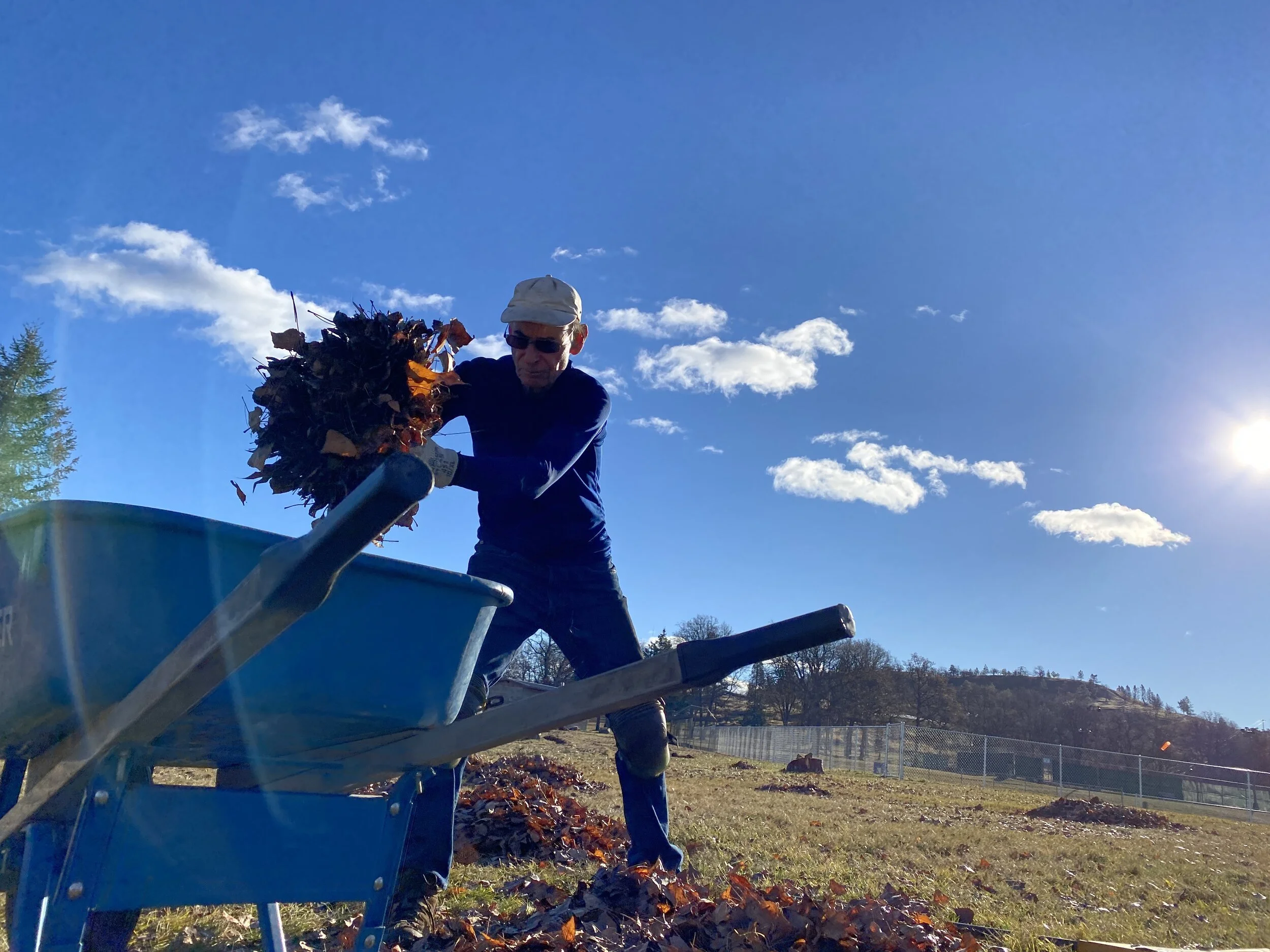 David volunteering to remove leaves from Sorosis Park in 2020.