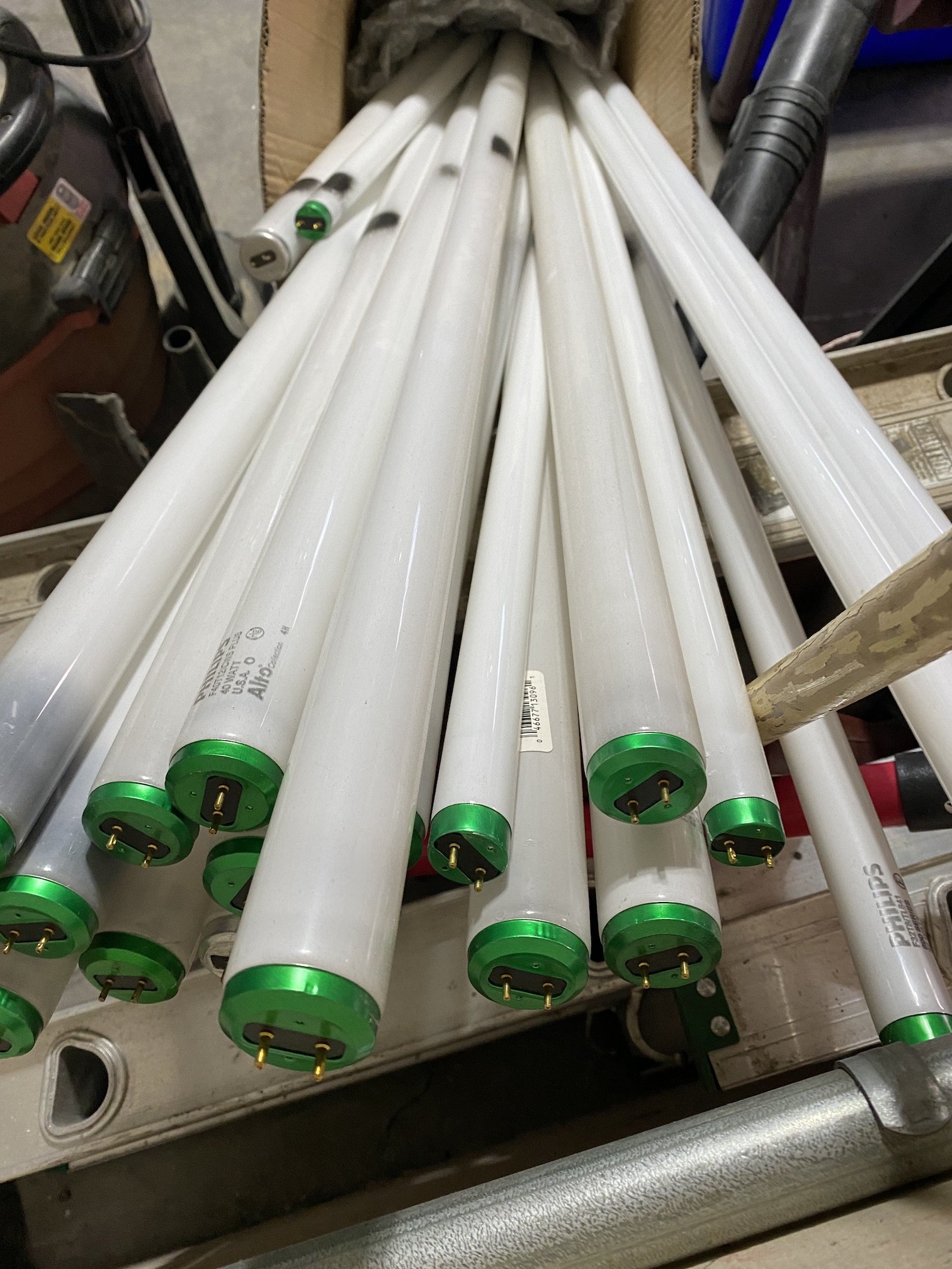 Piled high and precarious - maybe its time to part way with your flourescent tubes containing mercury vapor or even small amounts of liquid mercury. Might want to lose that muscle shirt too! LOL. There are 18 hazardous waste collection events for items such as these in 2023.