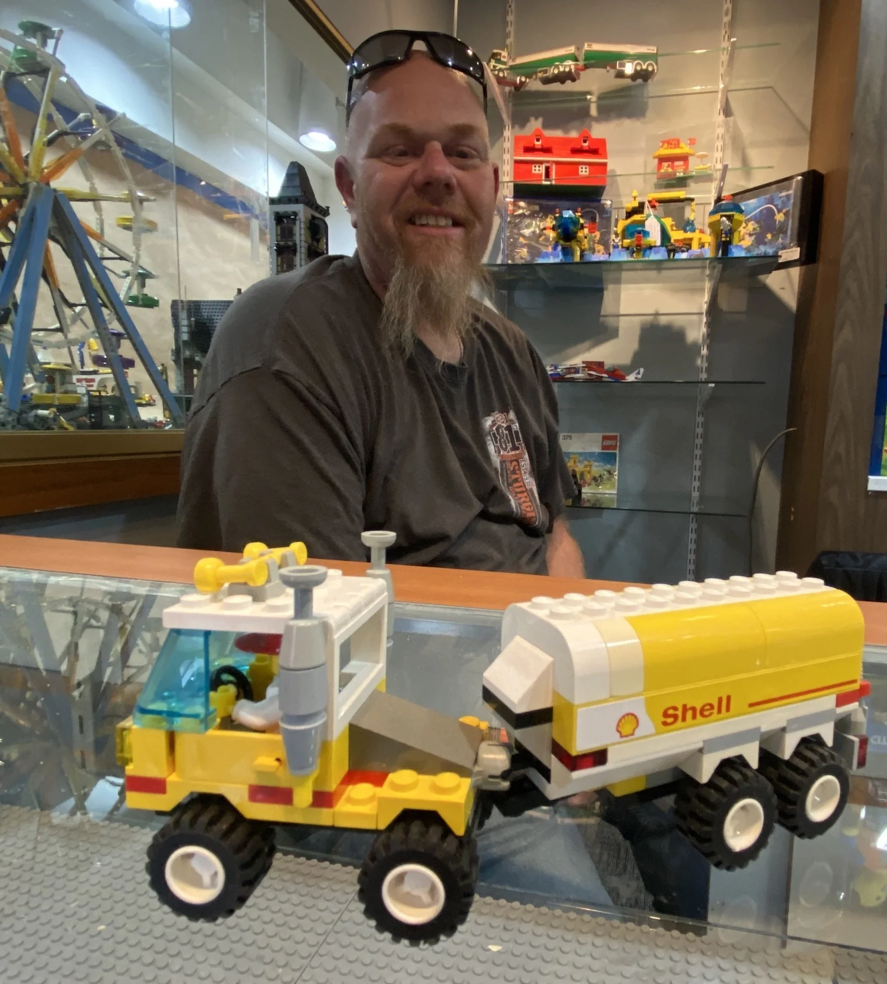 Jay Wilson displays a 1964 Shell Lego Truck. He said the company started with these trucks and switched from Octane to Shell to Exxon and then back to Octane during the early years.