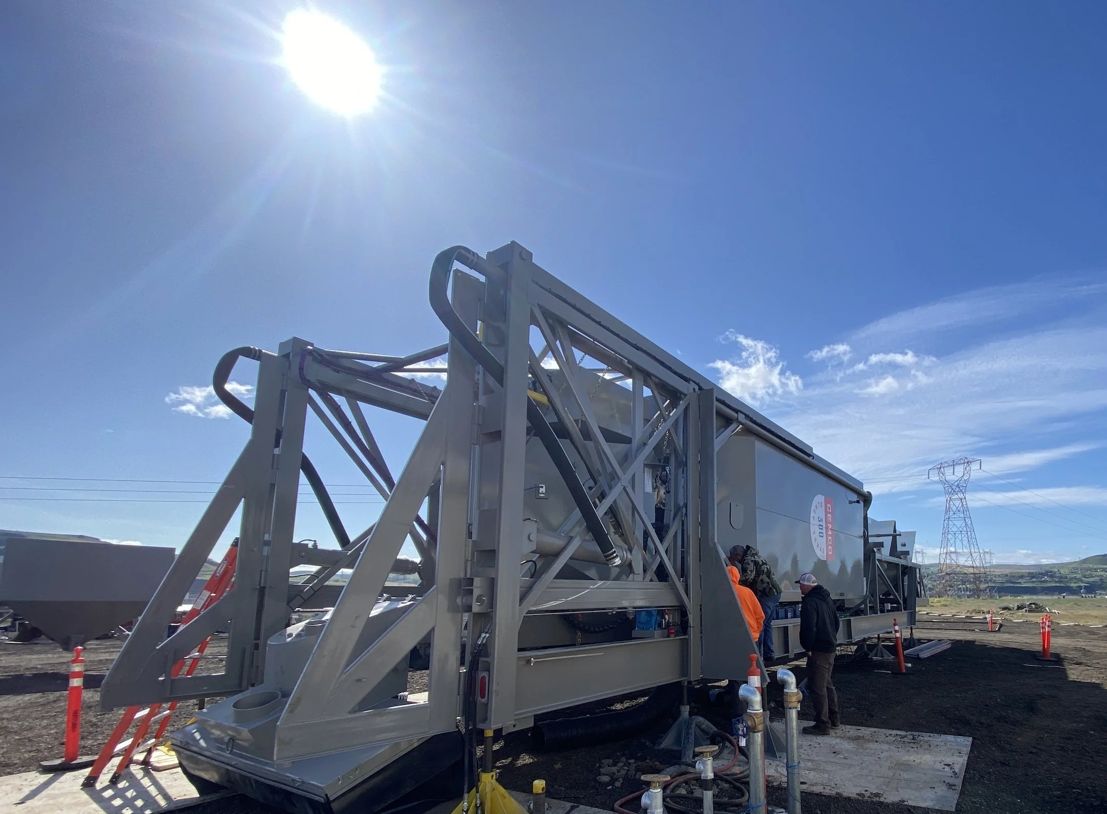 This batch plant can tip itself upright with its hydraulic rams. It can batch 10 yards of concrete at a time, or a full concrete truck in 3 to 5 minutes.