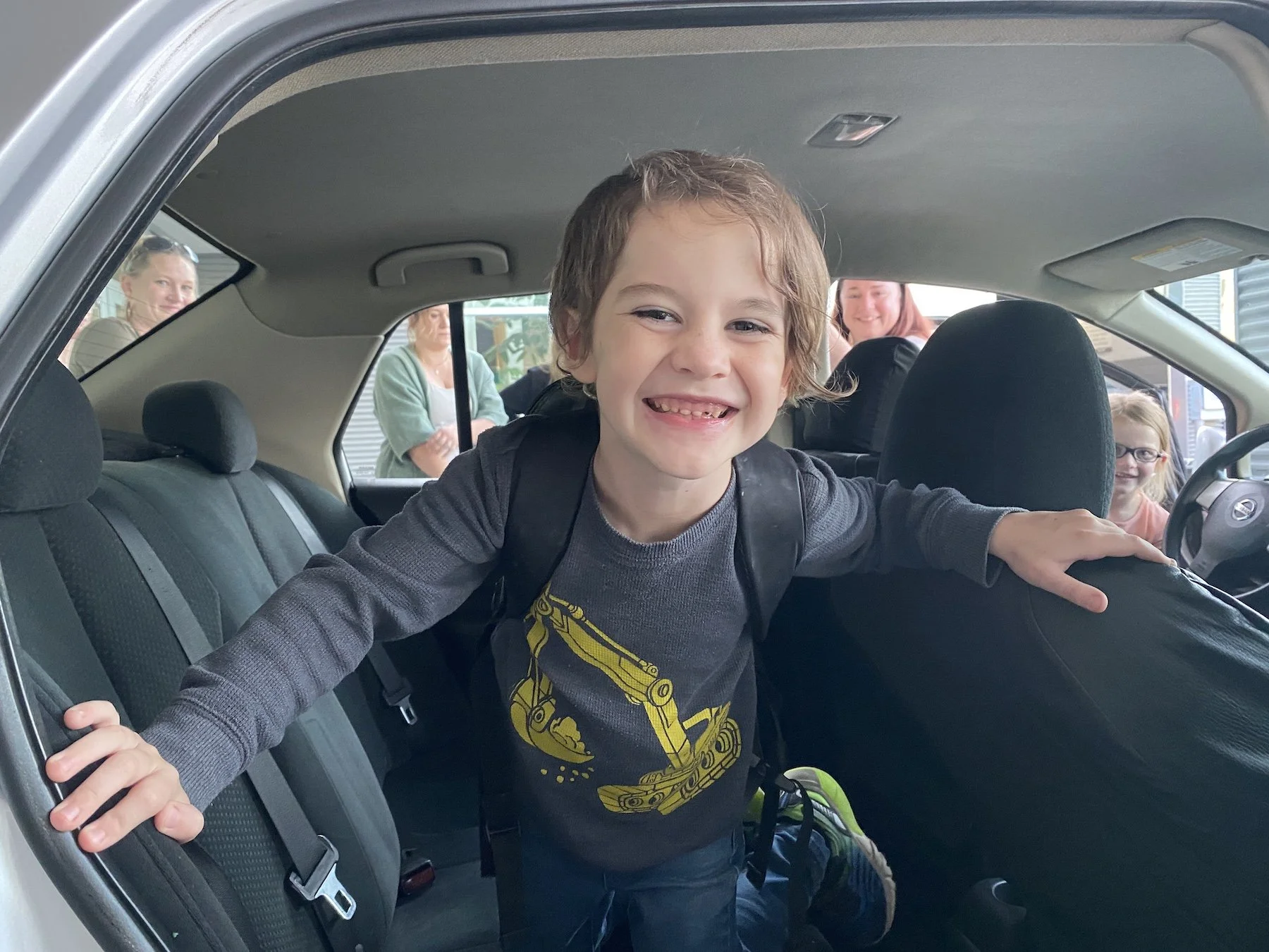Max Dollarhide, 6, is all smiles in his Wheels of Hope