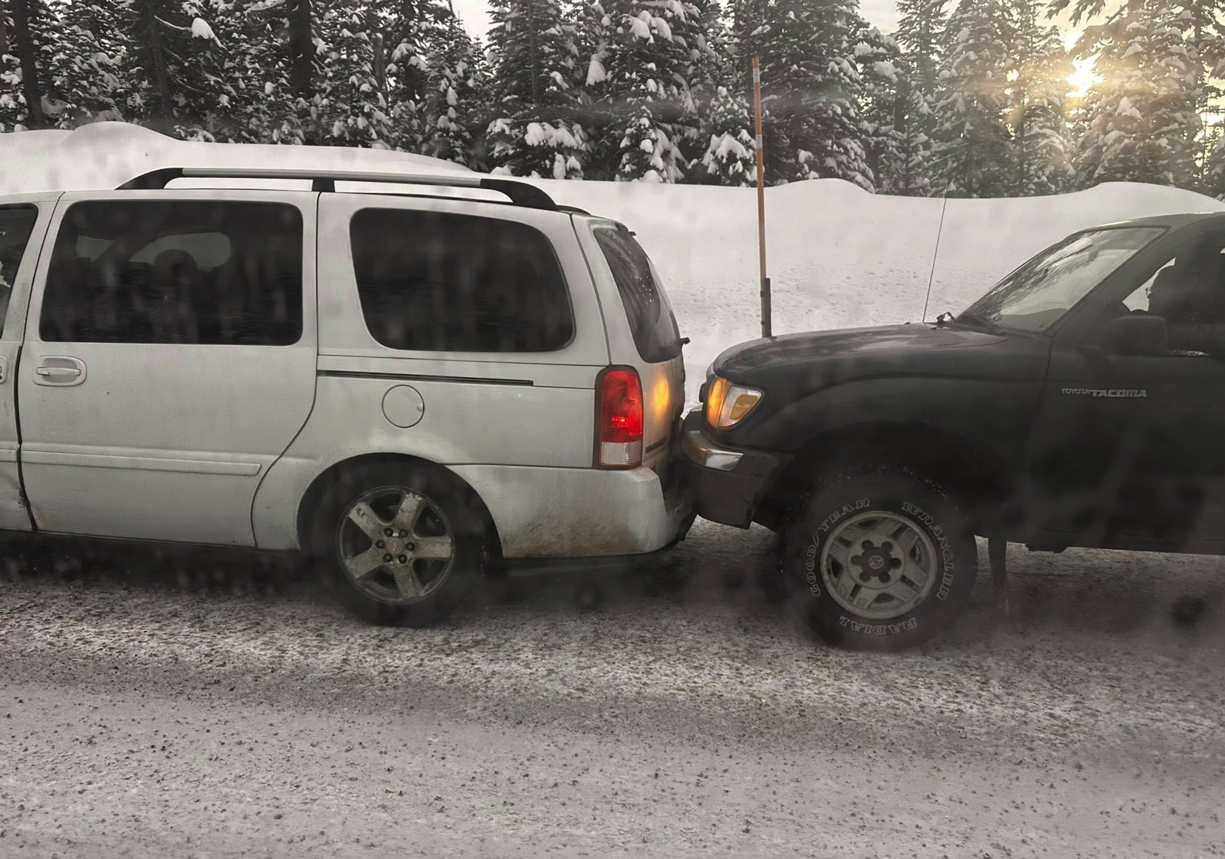 The Dalles, Ore., Feb. 21, 2026 — A stalled semi-truck without chains triggered a multivehicle traffic hazard involving dozens of vehicles Saturday afternoon on Highway 35 near Government Camp, as heavy snowfall created dangerous conditions on Mount Hood during peak weekend travel.