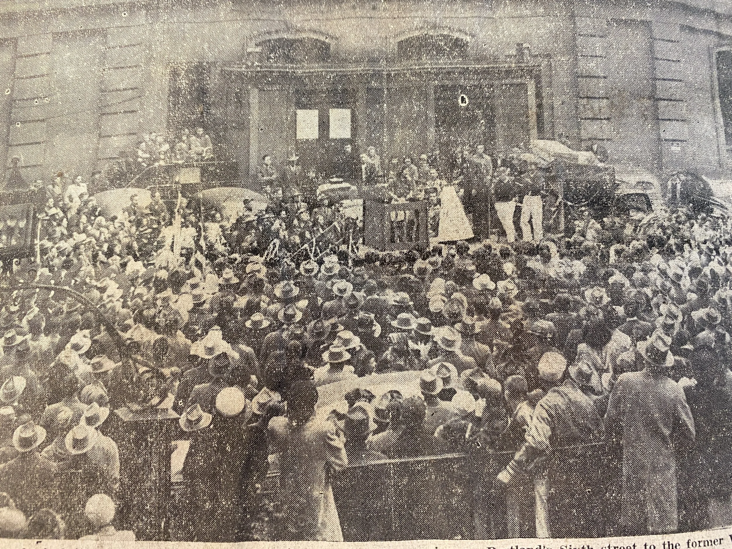 Residents of The Dalles rallied in Pioneer Square while their team prepared at Multnomah Stadium several blocks away. The Stadium would later become PGE Park.
