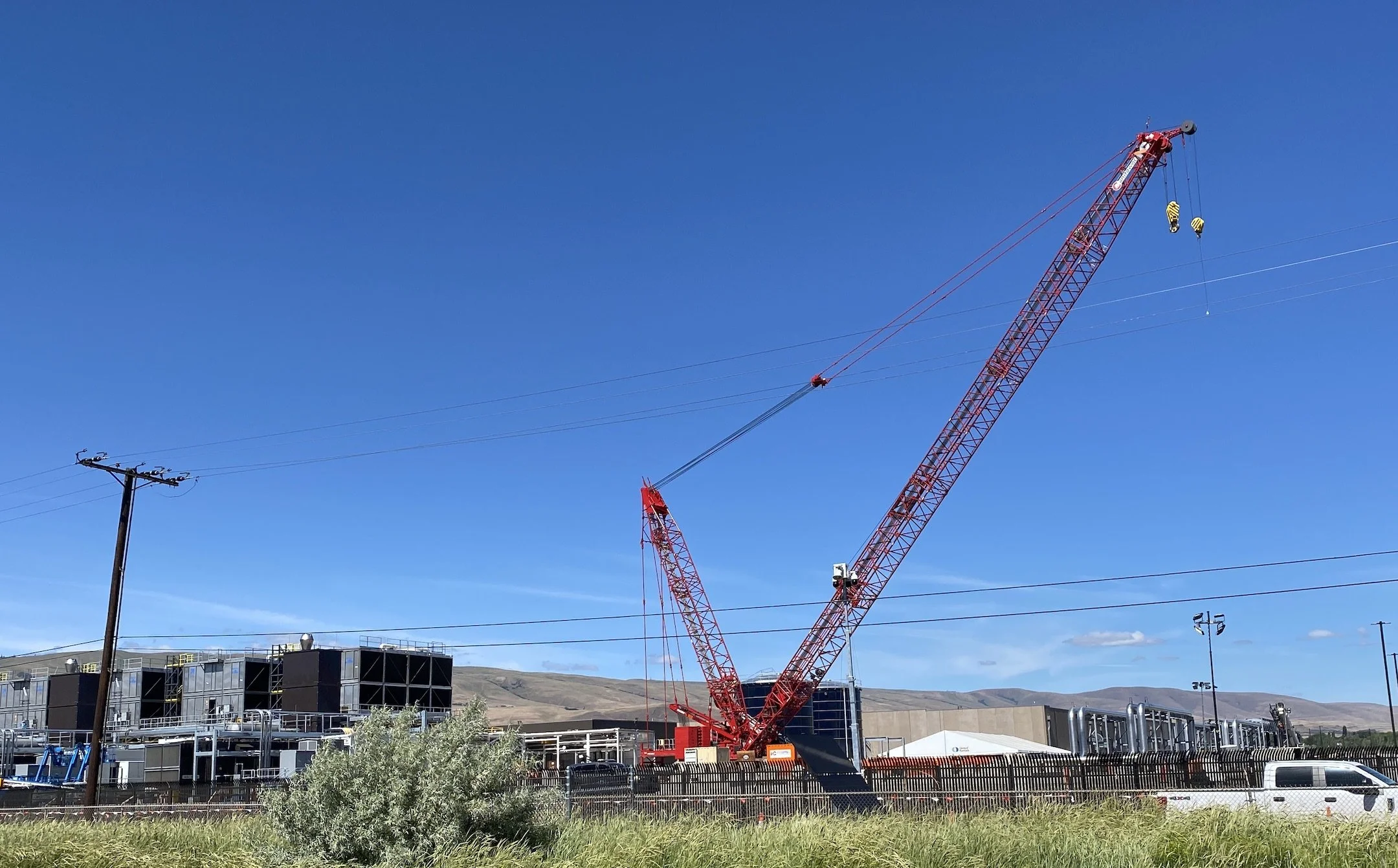 A crane used to lift coolers sits idle at the 3500 River Road Google site last week.