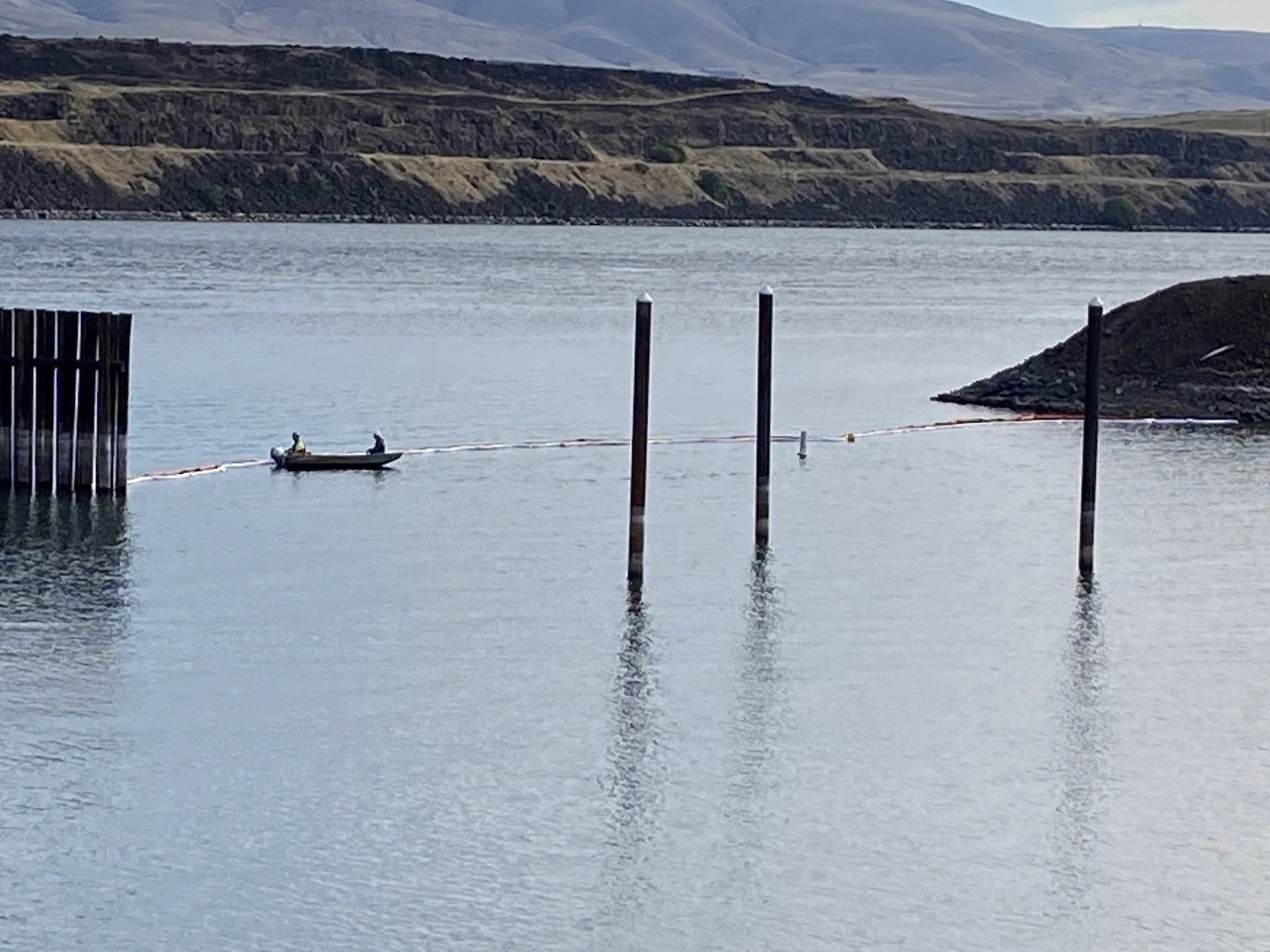 As of this morning, the Underwater Services company had deployed floating containment booms at the mouth of the marina entrance as well as around the burned boathouses. Port Executive Director Andrea Klaas said she was able to get the team onsite with a call last night to limit the environmental damage.