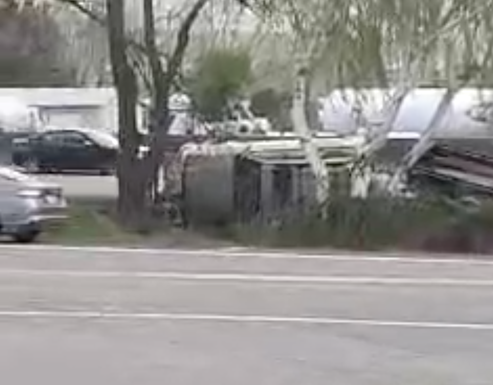 “I heard tires squeeling on the pavement and looked out the window and saw the truck and trailer hit the dirt on the side of the freeway and it flipped over,” she said.