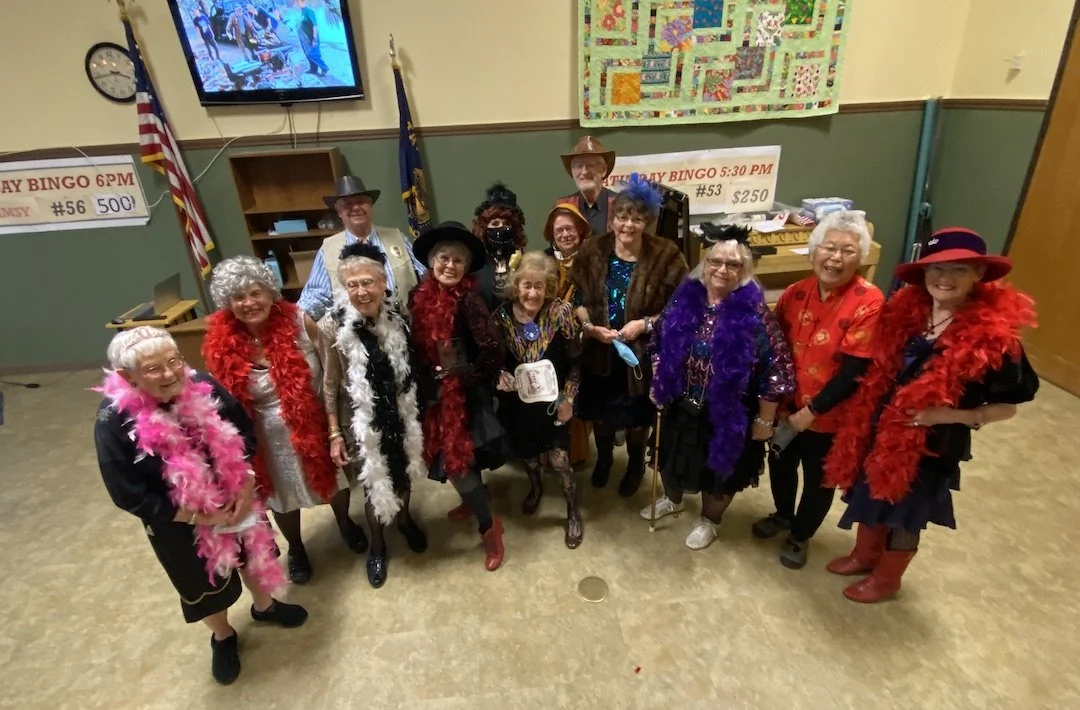 She insisted the Fort Dalles Floozies should receive it as a whole. The group dresses in era-correct floozieness and are accompanied by a brothel inspector and sheriff to provide living history to the tens of thousands of tourists who disembark from cruise ships in The Dalles. They also entertain at the Oregon Veterans Home in The Dalles and attend other events such as funerals.