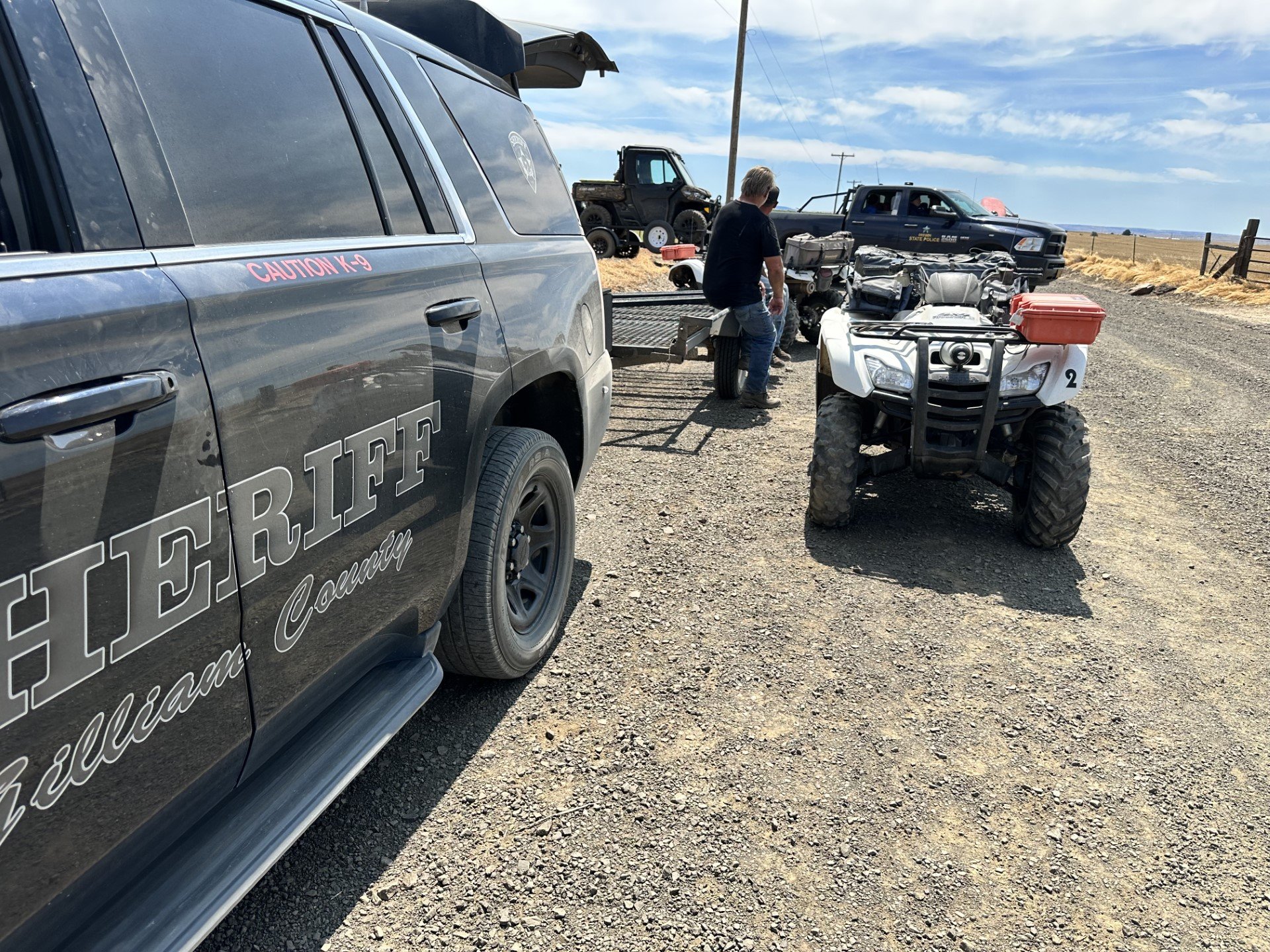 On July 16th at approximately 5:00 am, a GCSO Deputy, 3 GCSO Search and Rescue members, and 2 Wildlife Troopers gathered multiple off-road vehicles and equipment needed for the mission and responded towards the river. With assistance from a local landowner, they granted our resources access to the John Day River through their property.