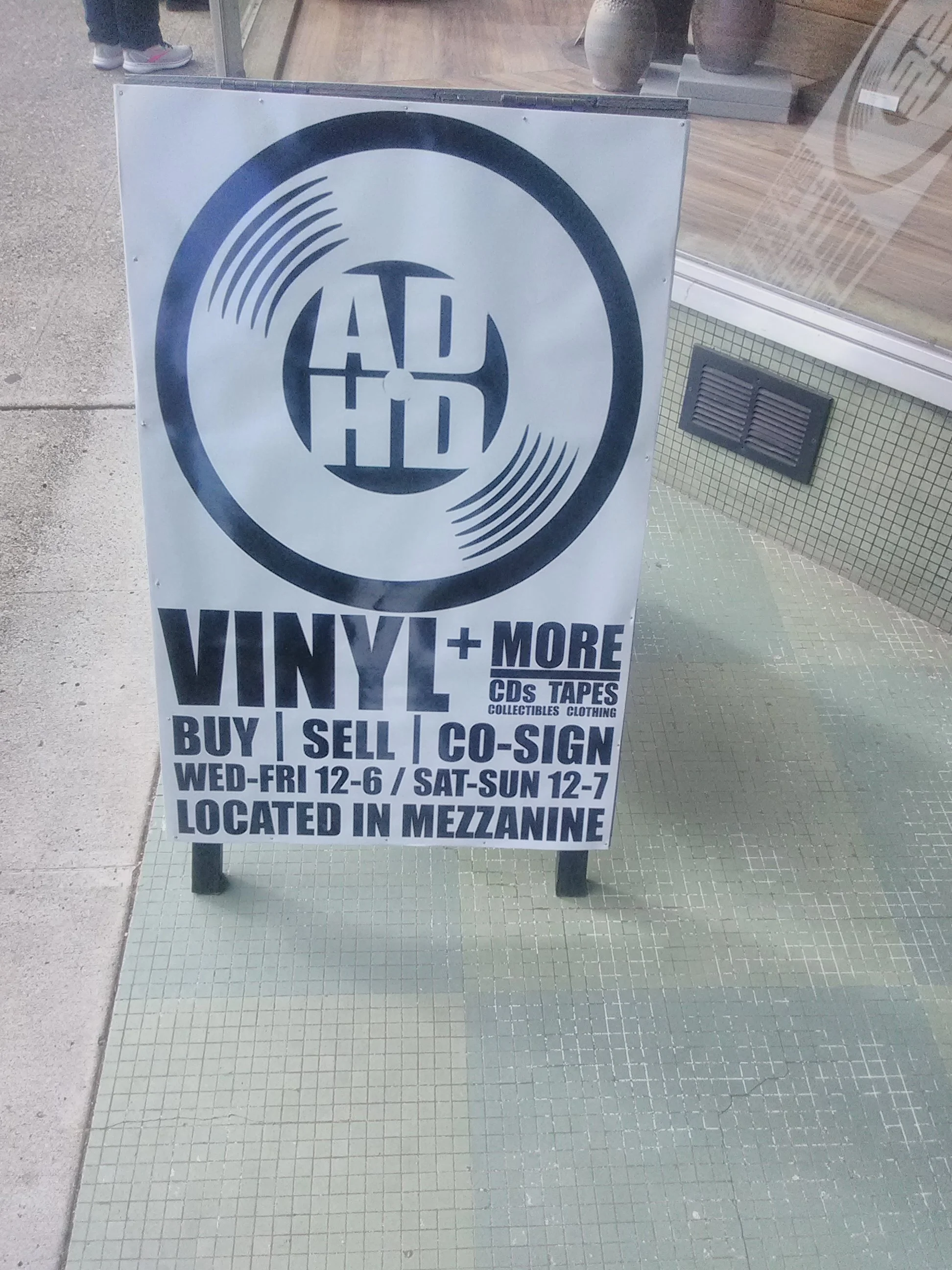 Just opening last week, you can check out ADHD Music (210 Oak - Upper Mezzanine), for what looks to be records, CDs, collectible cards, all mixed in with some semi-vintage audio and music memorabilia. No word on Record Cleaning Method, but owner Shea Wooten mentioned he got decent results from the use of a Heated Album Clamp that works to restore Warped Records. The temperature is calibrated to not melt the music, which is a good thing. Inventory is just starting out, and the upstairs space already has a good music-hang-out vibe.