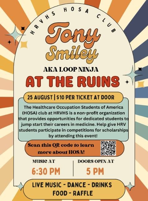 Save the date and support the Healthcare Occupation Students of America (HOSA) at The Ruins in Hood River on Friday, Aug. 25, with live music by Tony Smiley. Doors open at 5 p.m. and music starts at 6:30 p.m. Tickets are $10 per person and are sold at the door. Event features drinks, food, and a raffle with items from local businesses.