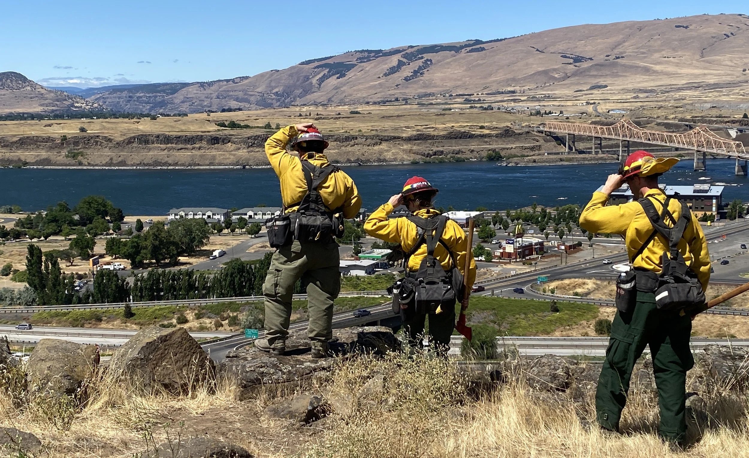Firefighters from around the state were in The Dalles to assist in the fire that threatened homes in Columbia View Heights on Thursday, Aug. 4.