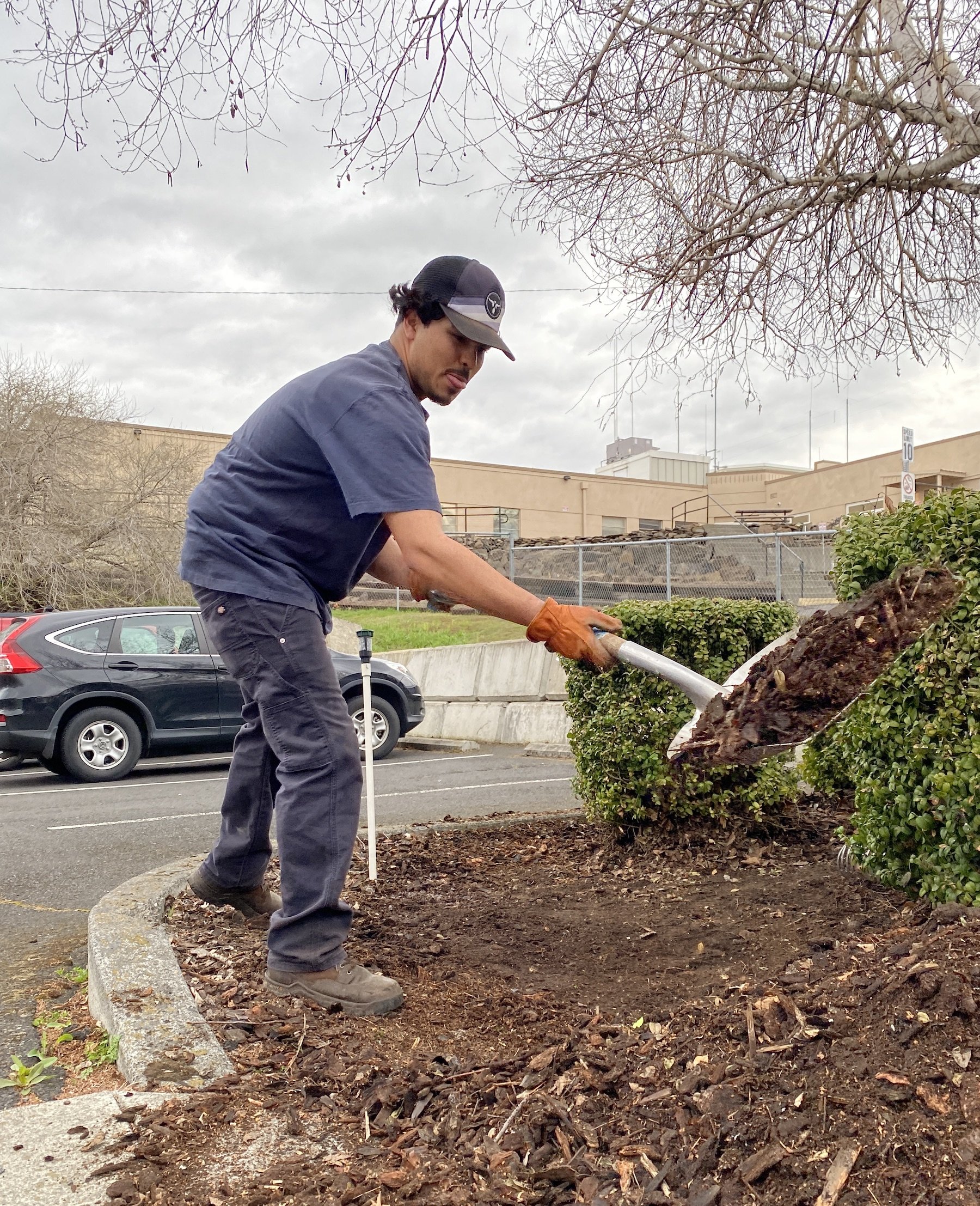 Jorge Valdez of The Dalles works on the beds in front of Casey Eye Institute on 7th Street in The Dalles this morning under overcast skies. Mother Nature is looking to prime the pump this weekend with showers predicted through Sunday in the area, but then breaking way to a week of mostly sunny days. Get the shades out and see if you can find that half-tube of sunscreen!