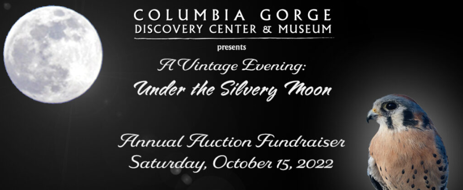 THE DALLES—Columbia Gorge Discovery Center & Museum hosts a Vintage Evening “Under the Silvery Moon” auction fundraiser, Saturday, Oct. 15, 2022. Doors open at 5:30 p.m. and dinner starts at 6:30 p.m. at the Columbia Gorge Discovery Center & Museum.