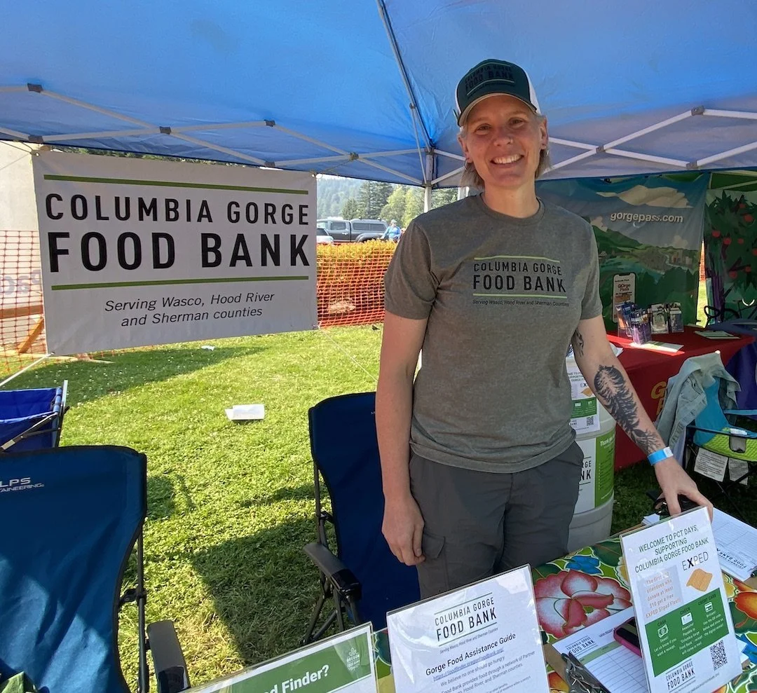 File Photo - Breen Goodwin, Exec. Director with the Food Bank in the Port of The Dalles runs the booth at PCT Days in Cascade Locks in summer 2023.
