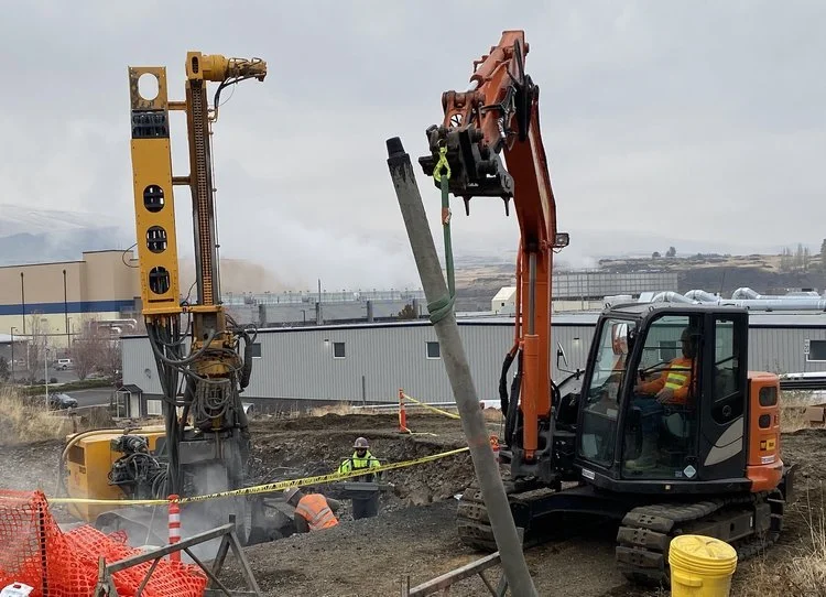 Drilling basalt for a power pole near PowderPure in The Dalles in November.