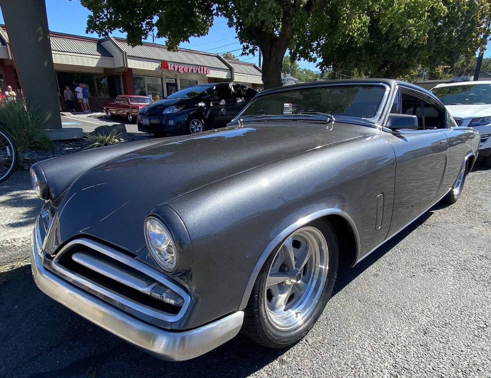 This 1953 Studebaker, below, was a real head-turner this afternoon. It had car seats that said Studecuda - our guess is because the rear design of the vehicle is very Dodge Barracudaesque. Paperwork in the vehicle said the model was a Starlight, and it contained a 4.4-liter engine that could produce 500 horsepower. Stock?