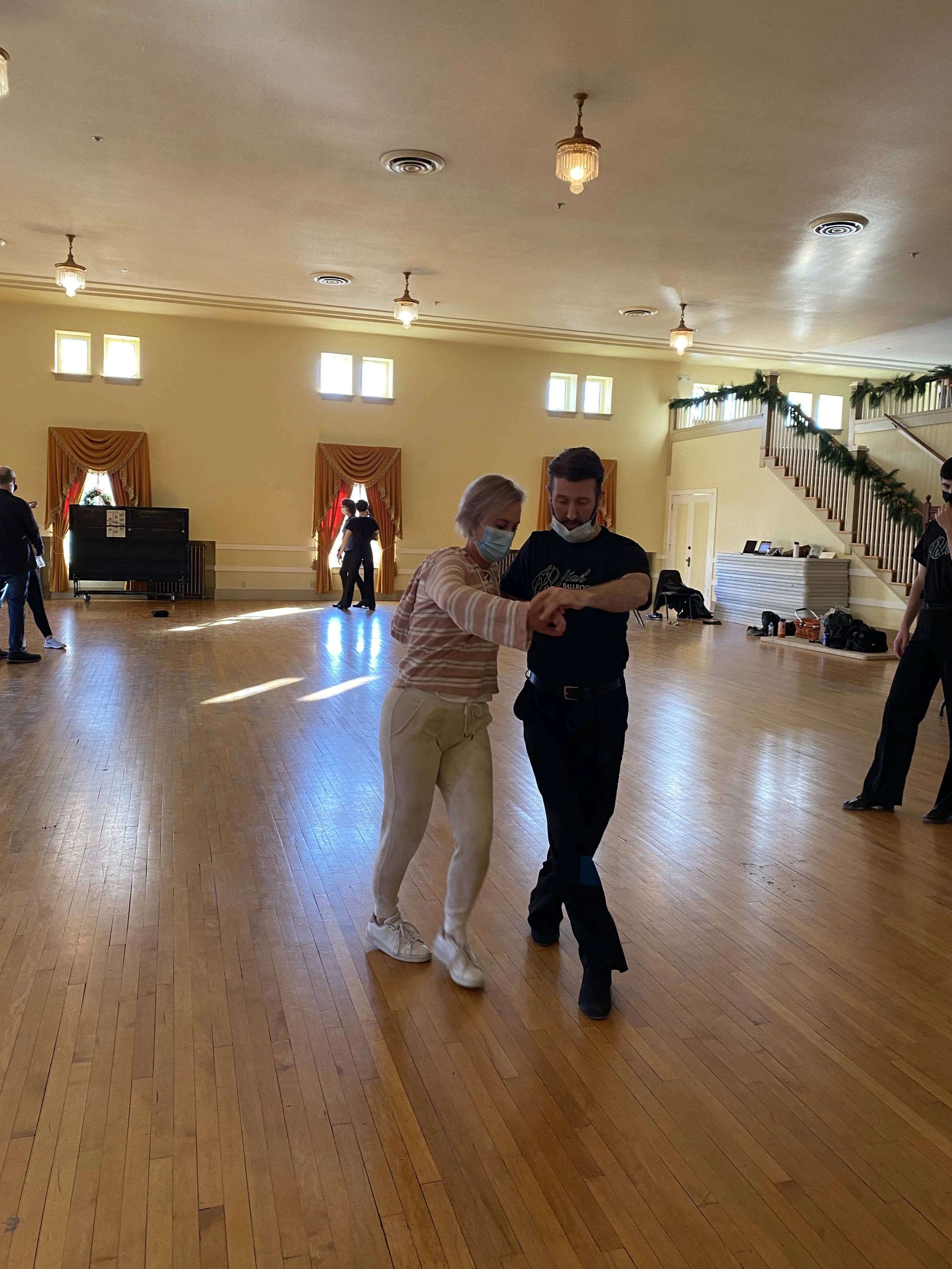 Working it out - Utah Ballroom Dance Company Executive Director Mark Lowes gives Erika Wilson some steps to mimic as they practiced last Sunday. They are preparing for Dancing with the Gorge Stars set for Friday, Jan. 14 at The Dalles High School Auditorium at 7 p.m. Get your tickets now.
