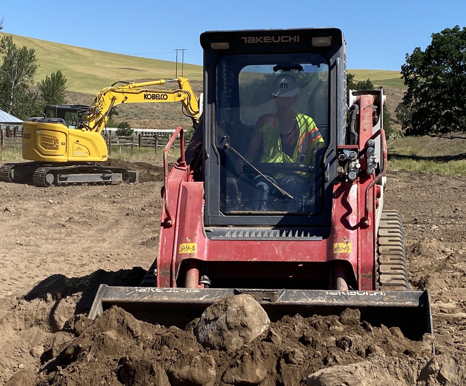And below him, Brooke Beachamp used a Takeuchi 470 loader to move dirt and rock across the field.