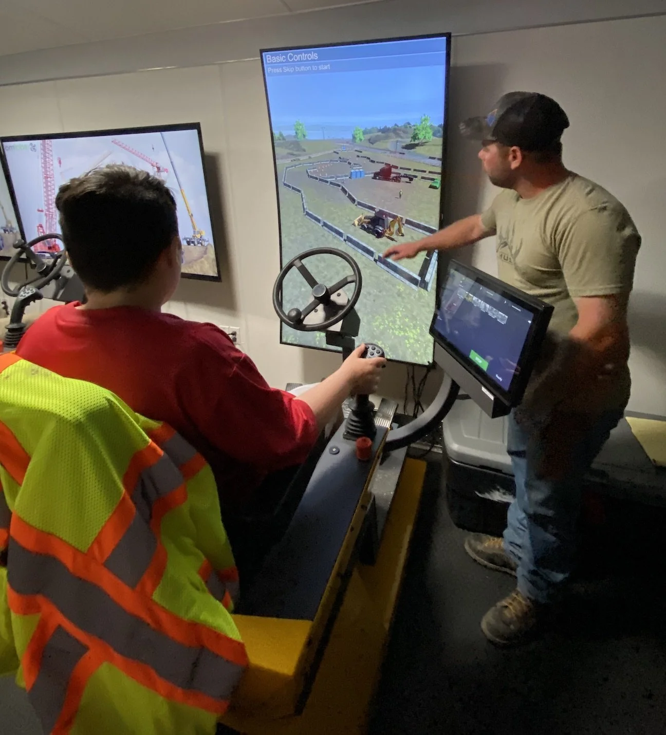 BTI Instructors Charlie Mcculloch and David Frazier put students into simulators where they could experience driving heavy equipment without any of the risk.