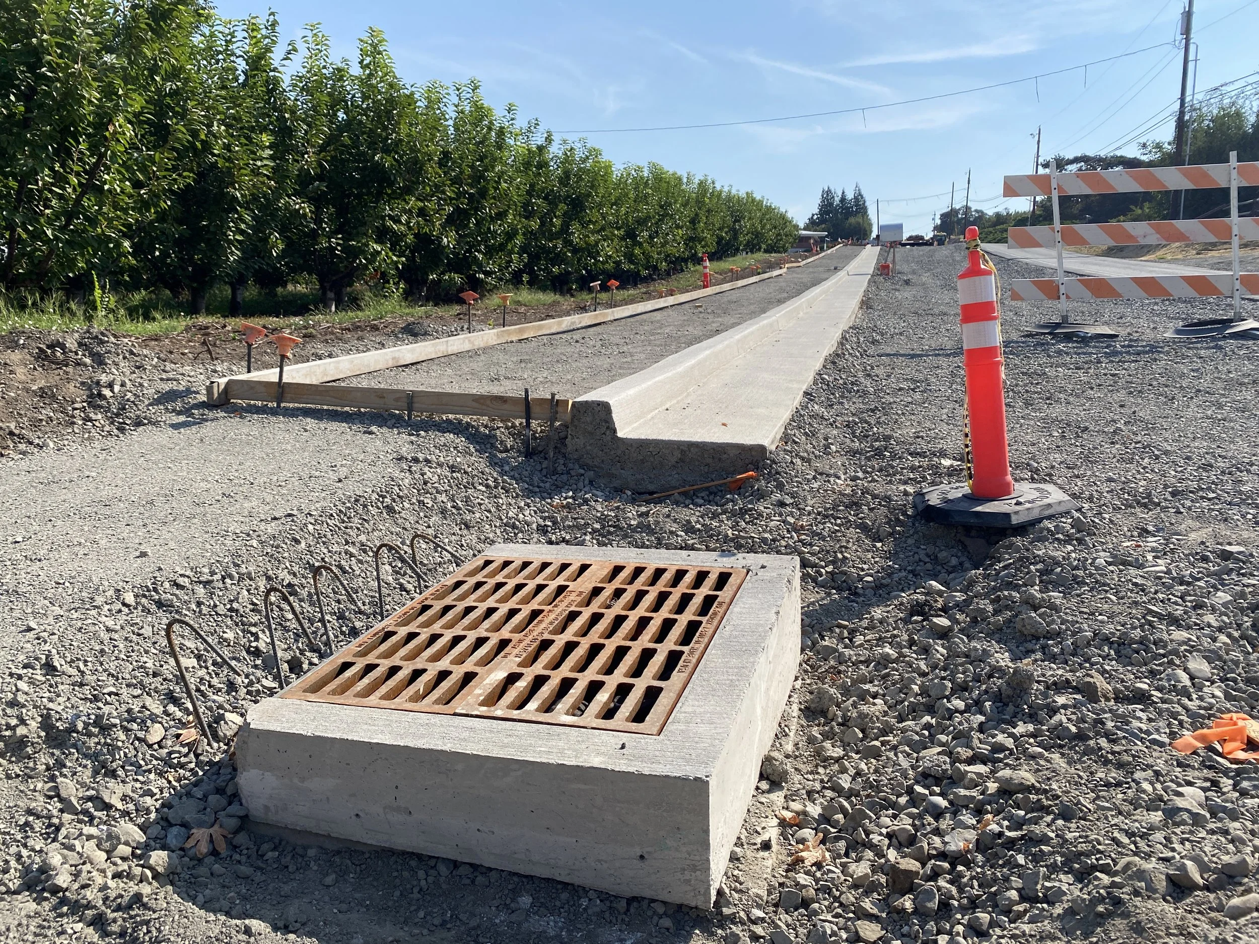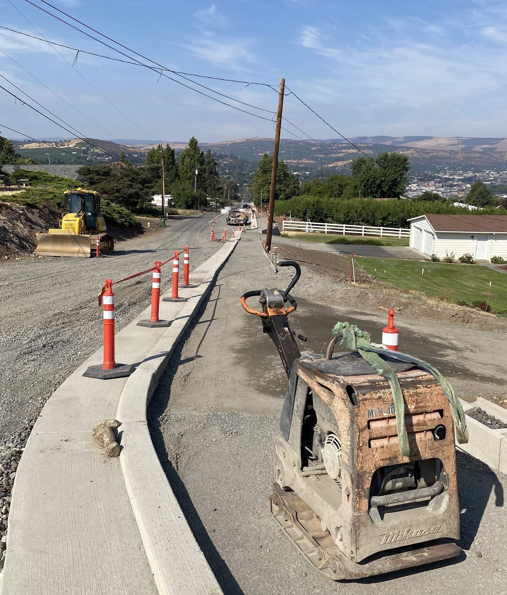The Dalles, Ore., Aug. 29, 2025 — Crews continued work Friday on the $1.9-million East 12th Street infrastructure project, a long-anticipated upgrade designed to bring sidewalks, storm drainage and safer access to a neighborhood once the center of controversy over an 80-unit housing development.