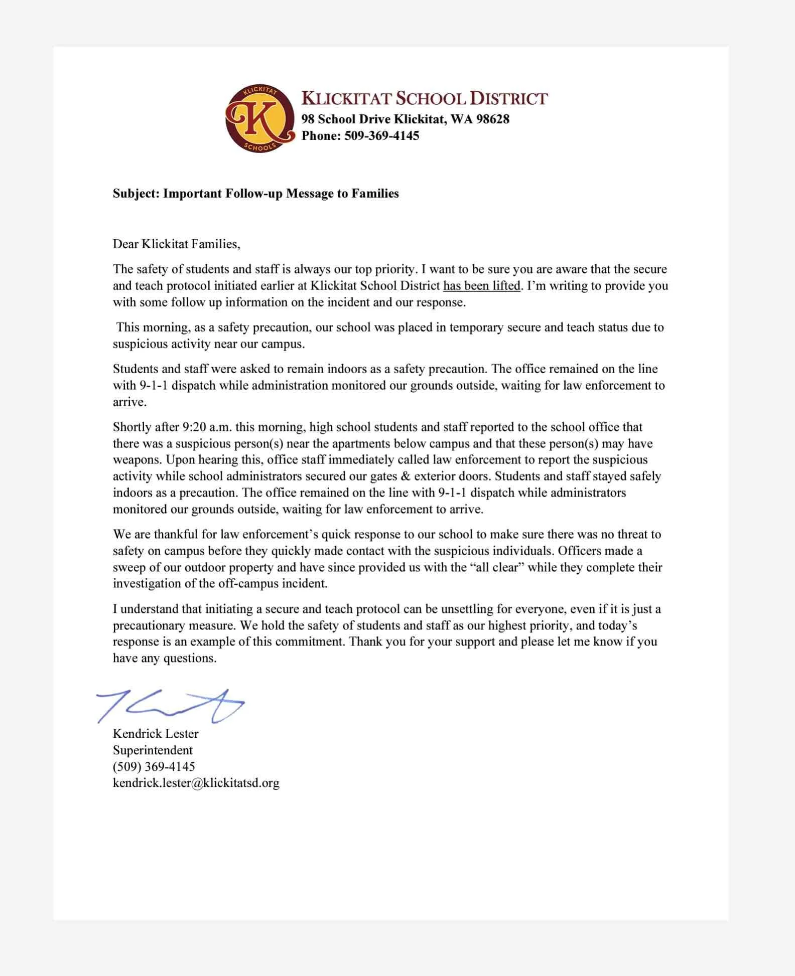 Klickitat School District has released the following message about the incident: https://shorturl.at/bflwI.