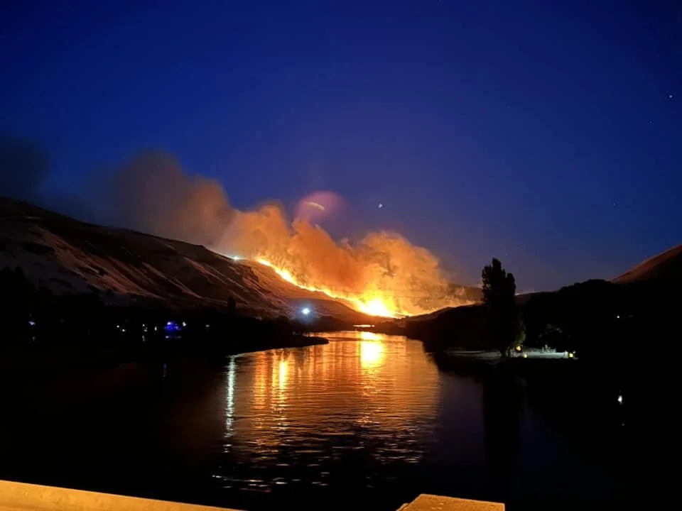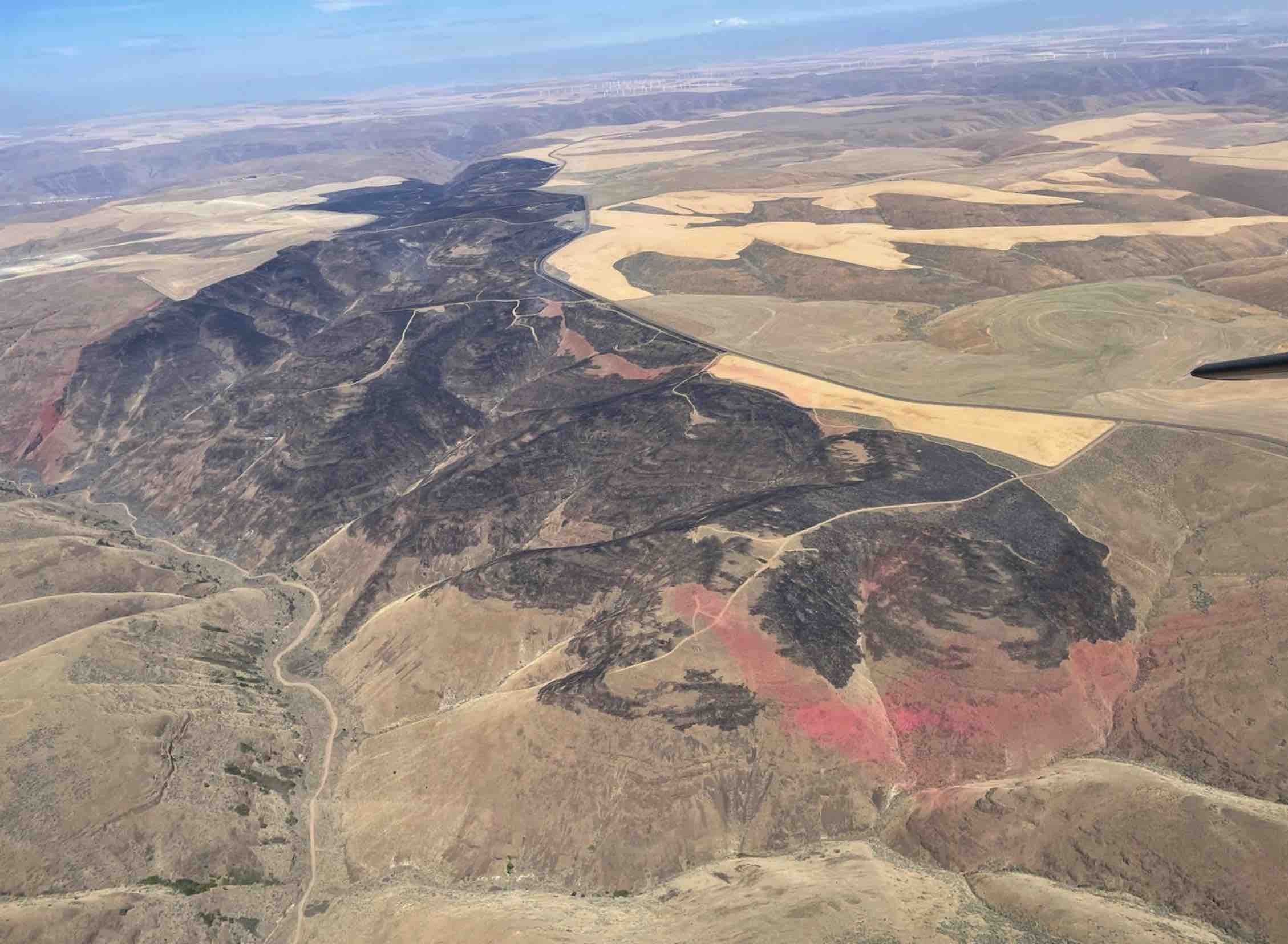 The fire burned in wheat and rangeland in the plateaus and rugged canyons near the John Day River 40 miles southeast of Biggs Junction. Fires such as these when pushed by heavy wind can last days if not weeks under hot dry conditions.