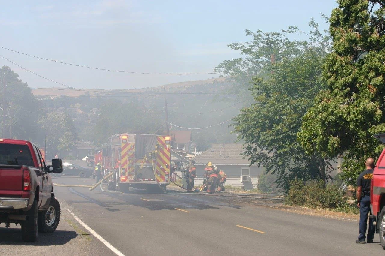 The Dalles, Ore., June 12, 2025 — Fire crews responded to a house fire at 2531 Old Dufur Road late Thursday morning, where smoke and flames prompted a large emergency presence and road closures in the area.