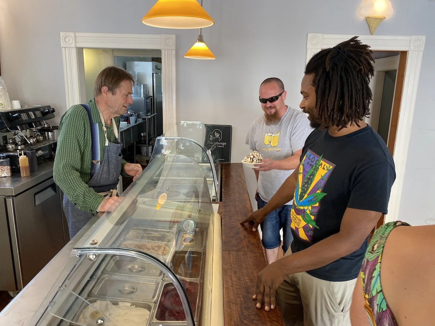 Decisions, decisions at Shannon’s Ice Cream, 318 E. Fourth Street. Shannon’s will be open late as well. And if you buy a human ice cream on Friday night, your dog will get a free Swell Gelato made by Debbie Hendrickx in the Port of The Dalles. See below.