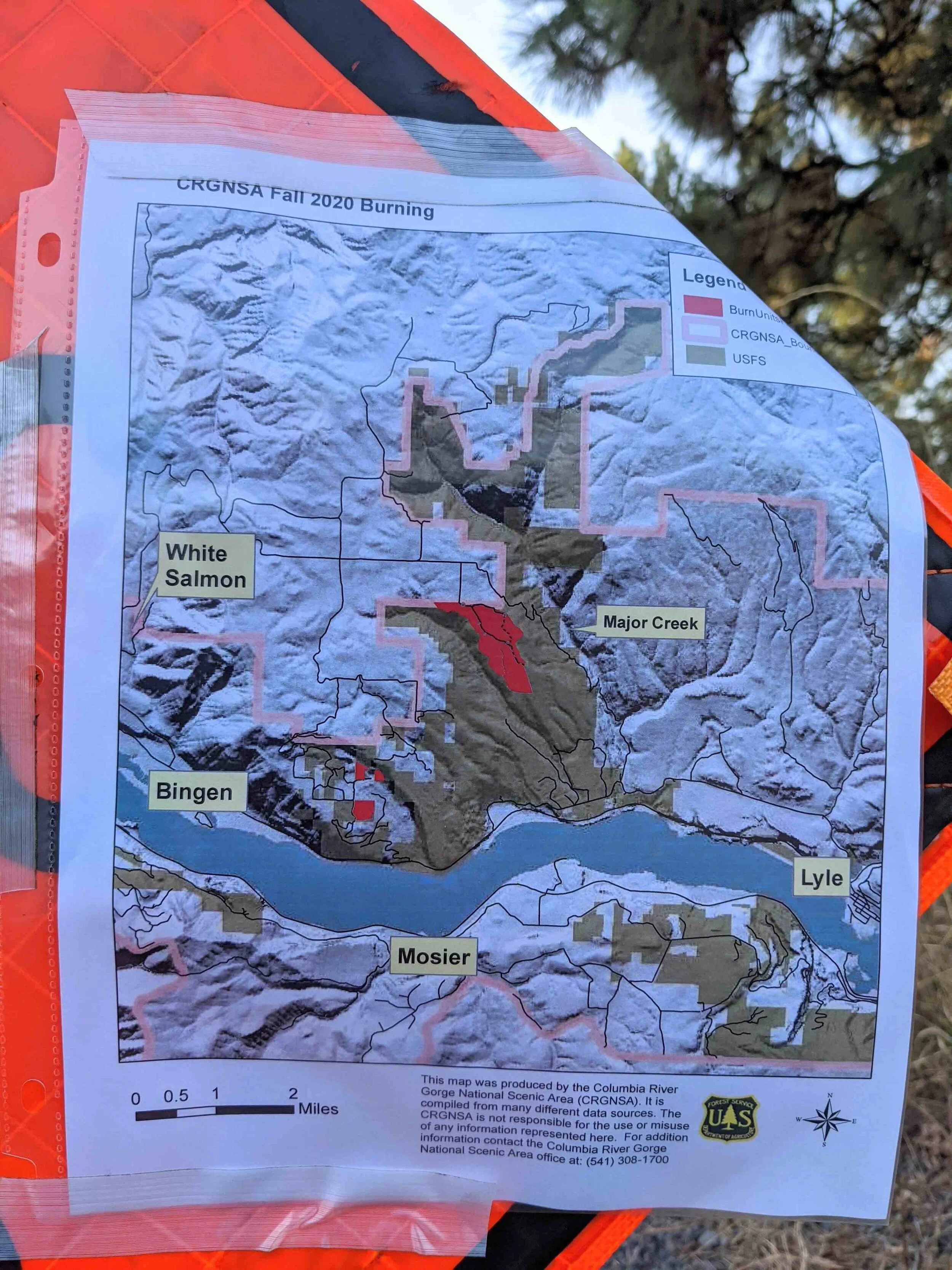 Pictured: Posted map showing prescribed burn areas.