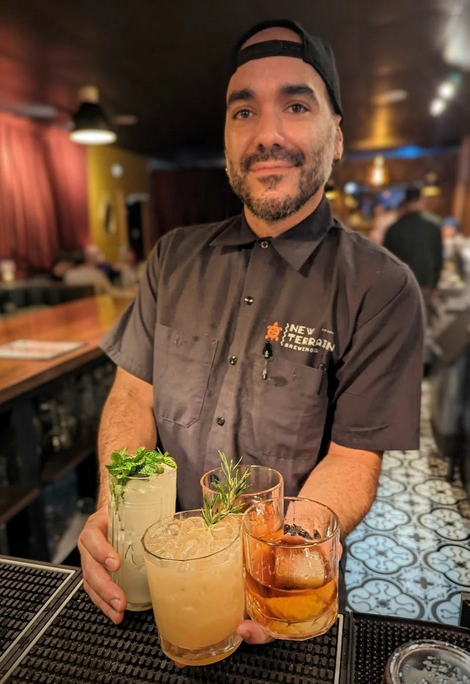 It features a blend of draft beer in bottles and cans, wine, and non-alcoholic beverages, as well as complex and carefully crafted and wildcrafted alcoholic botanical cocktails.