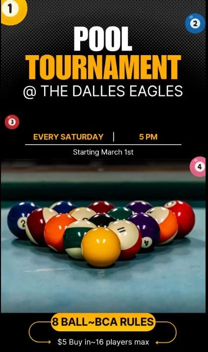 Saturday, March 22, Pool Tournament, 5 p.m.