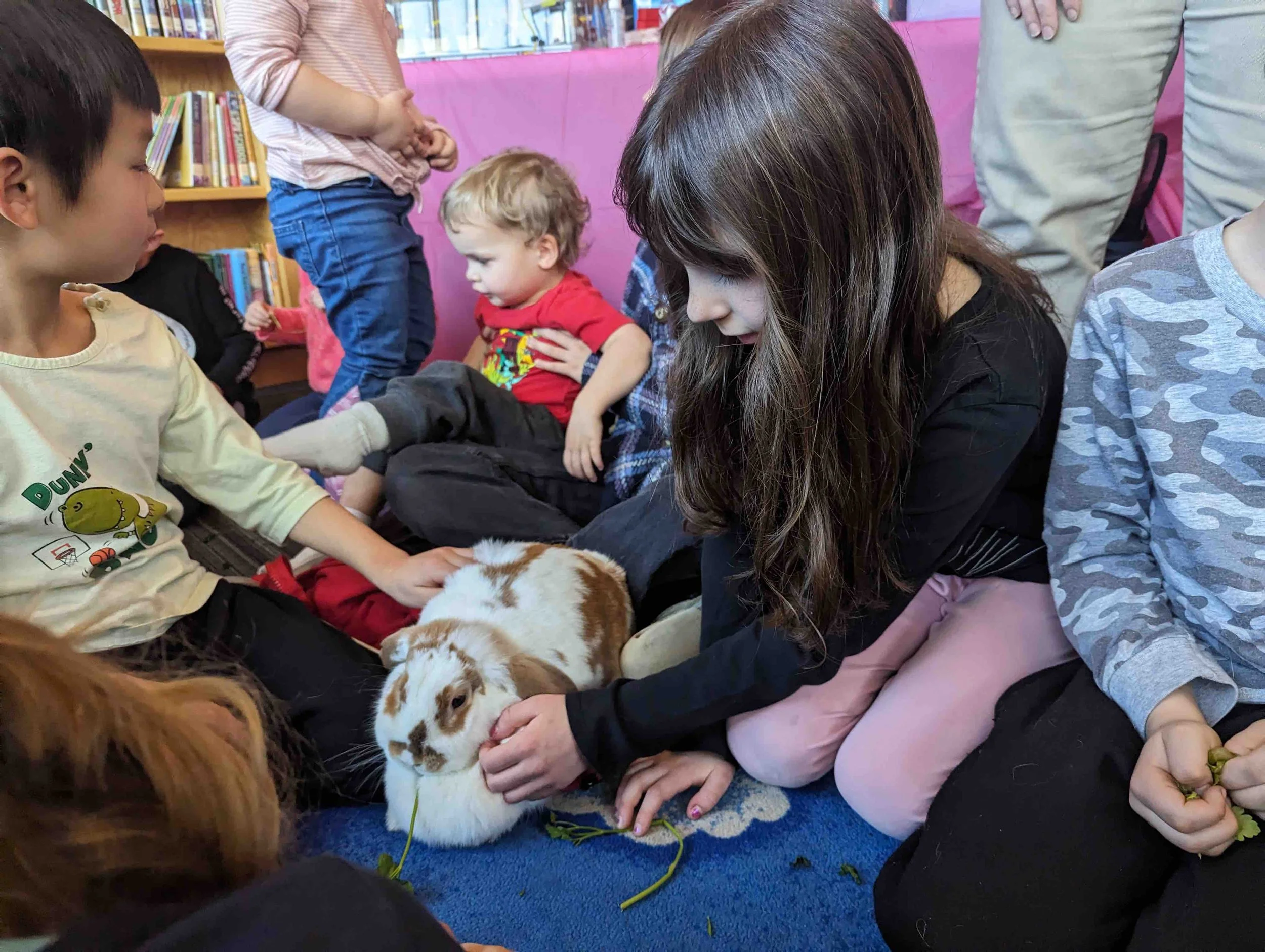 “The bunnies were a big hit,” said Kirsten Wells, who runs the children’s storytime series, “It was really cute. We read our book and the kids were great they were really engaged and into it. We read the book first because we know once the animals came out it would be all about them.”