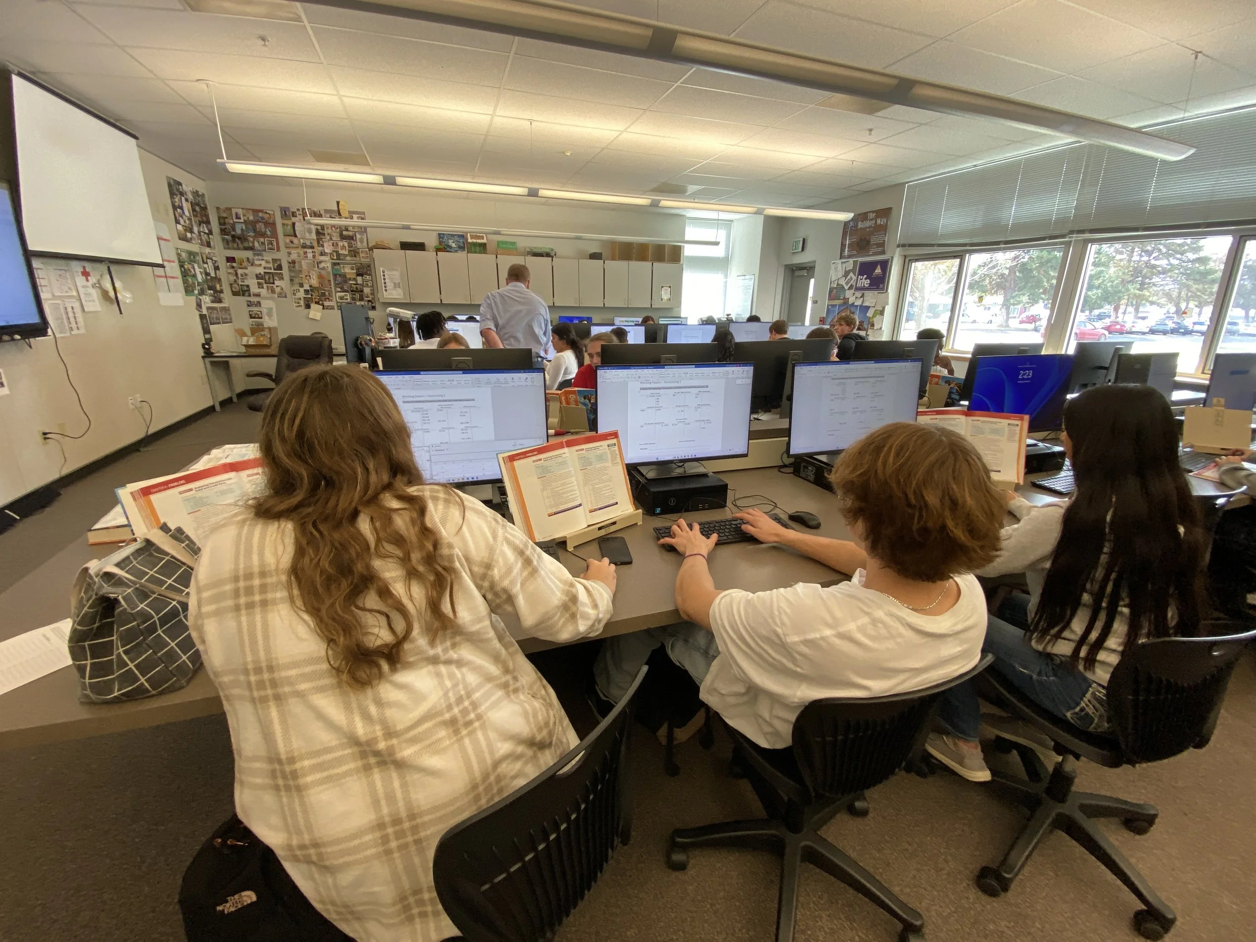 What immediately becomes evident while touring the classrooms at Hermiston High is the vast number of computers for students to use while following along with the instructors who utilize massive screens at the front of the room. Classrooms in accounting, engineering, hospitality, and agriculture are equipped with computers. Larger monitors in the accounting room can open multiple applications at a time, quickly. There is no waiting around. Students get to work right away.
