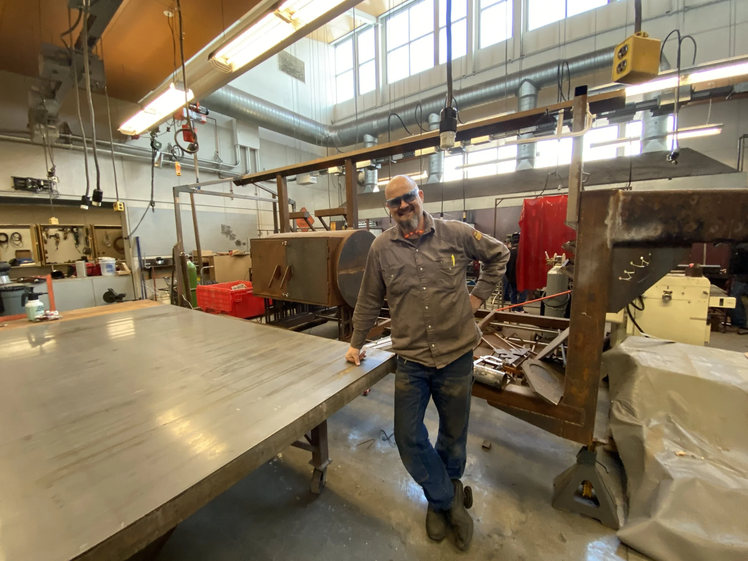 We met Parker Boren, a freshman working on welding in the metal fabrication shop. He was learning a basic weld but could move on to trailer construction or other various projects before graduating.