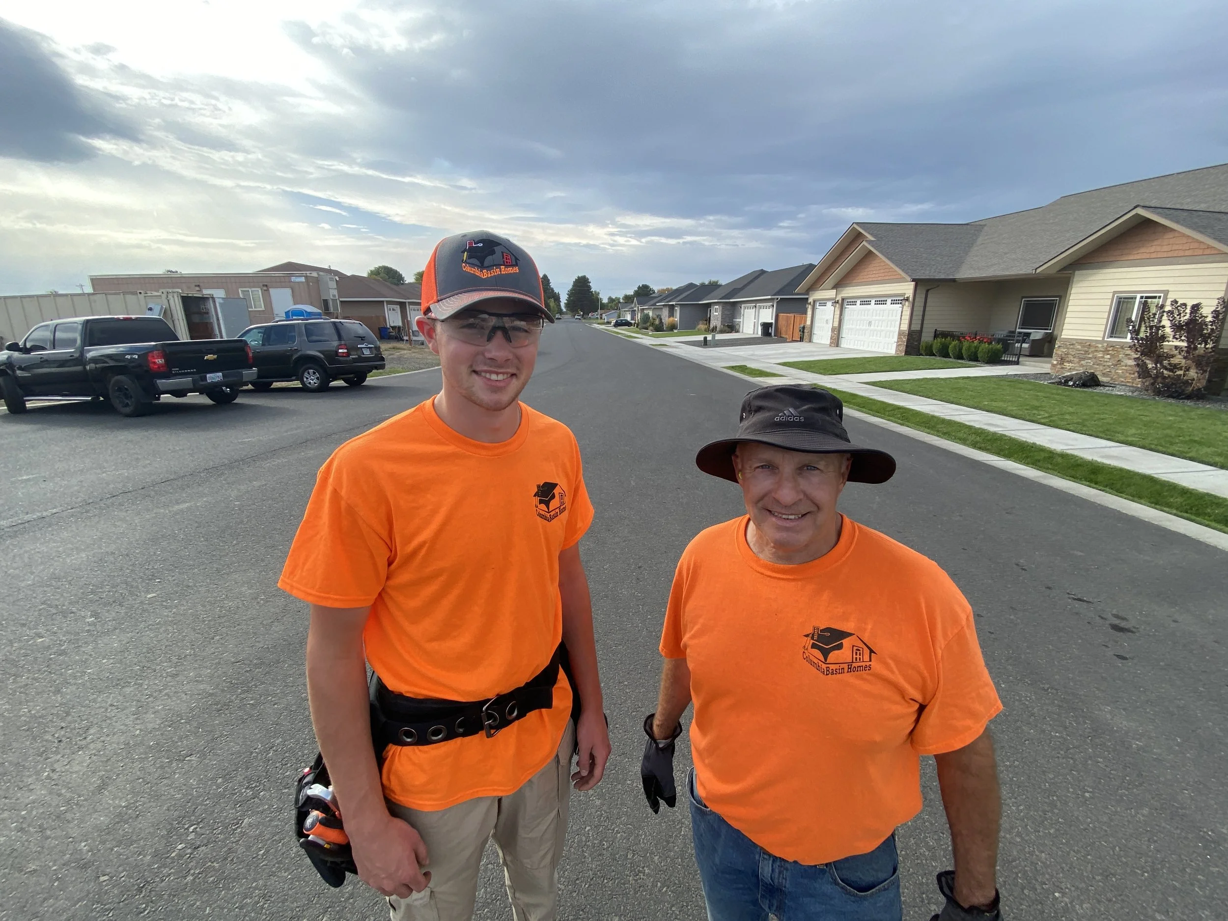 Hermiston High School Senior John Putnam Jr. and Columbia Basin Student Homes instructor Curt Berger stand in front of an entire street of homes built by students during the past 10 years. It is part of the High School’s Career and Technical Education program. Their last build sold for $514,000.