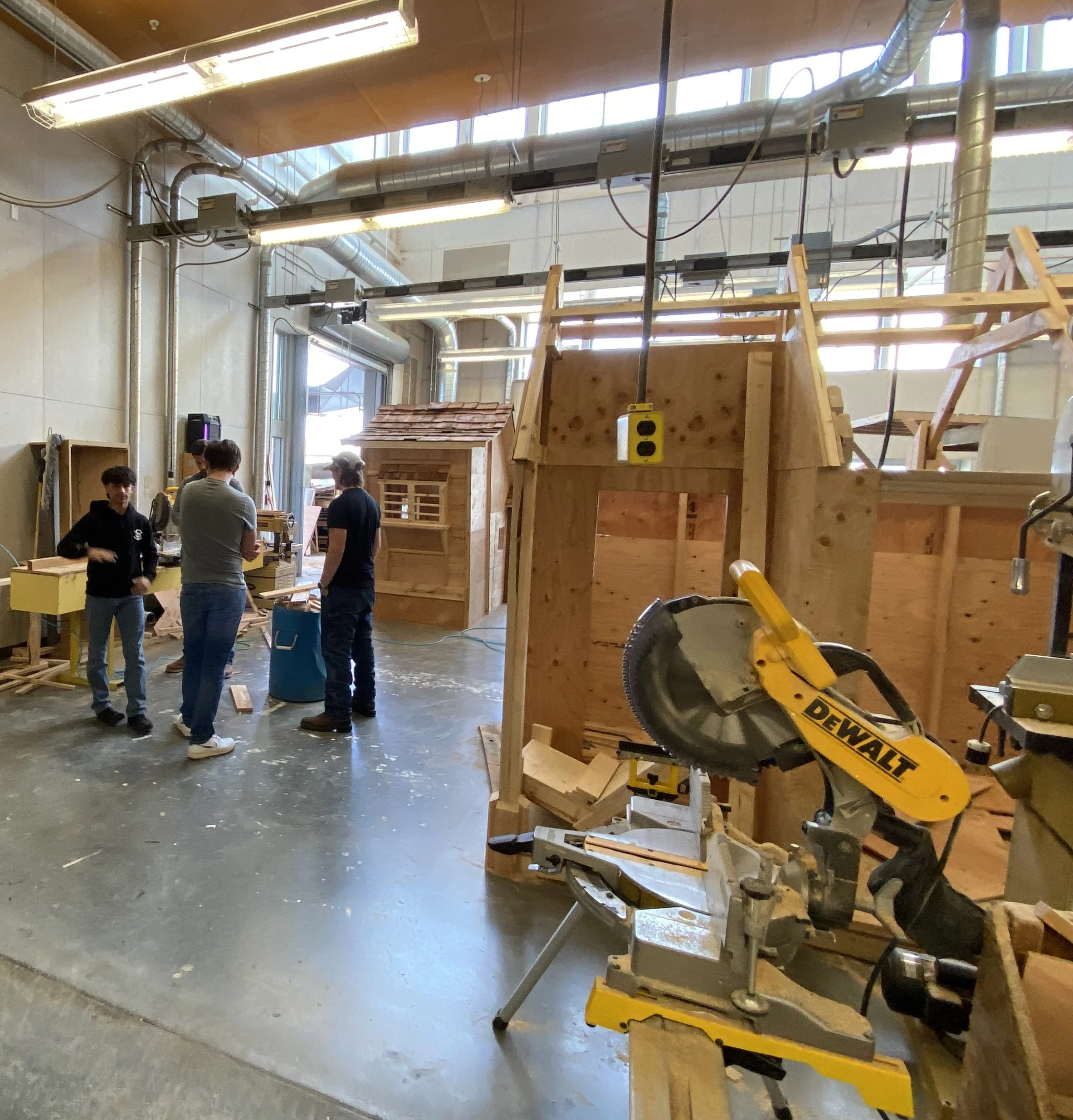 Students work on projects in Construction class. These kids could go on to construct houses in a few short years if they enjoy the career.