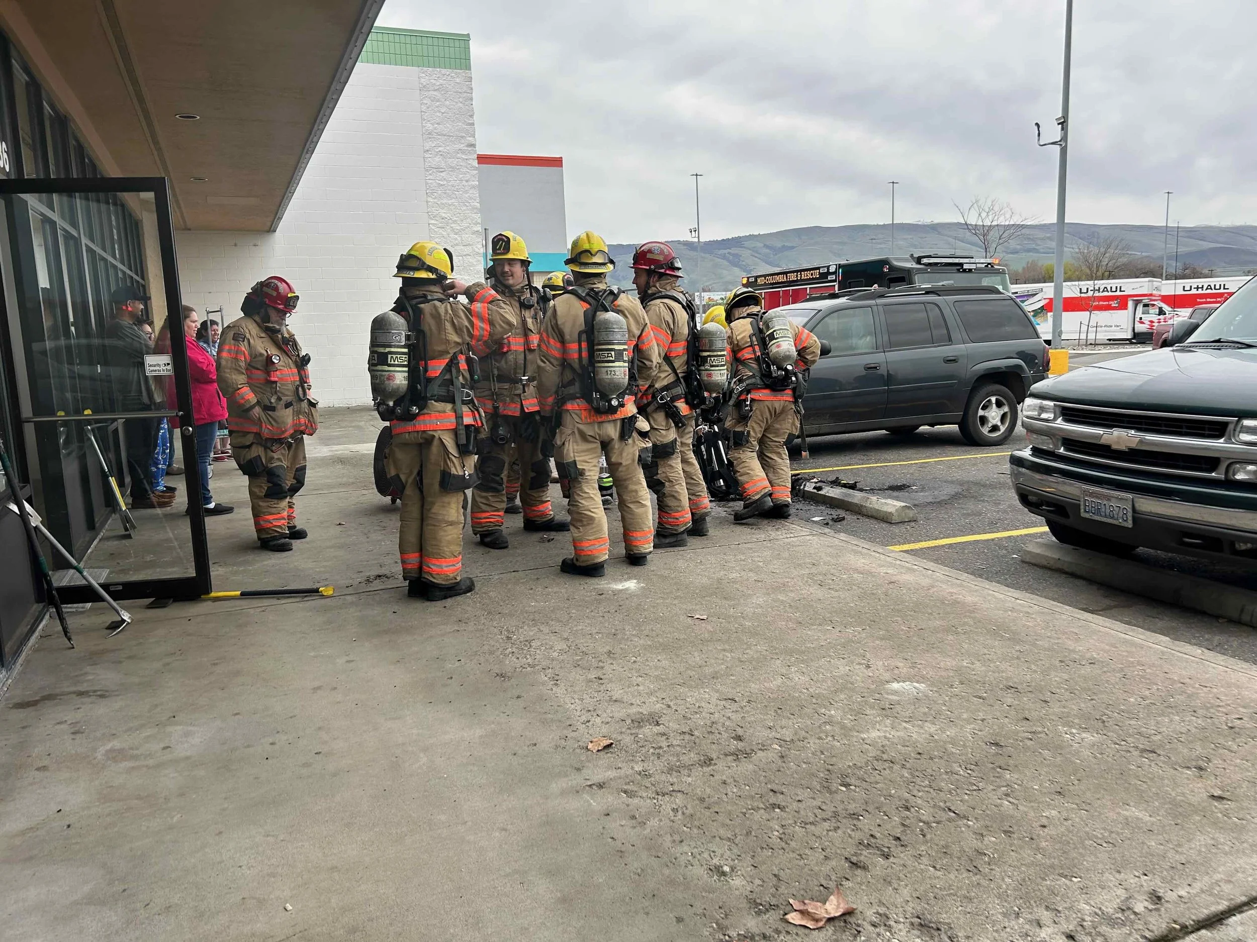 The Dalles Fire Dept Standing with extinguished items