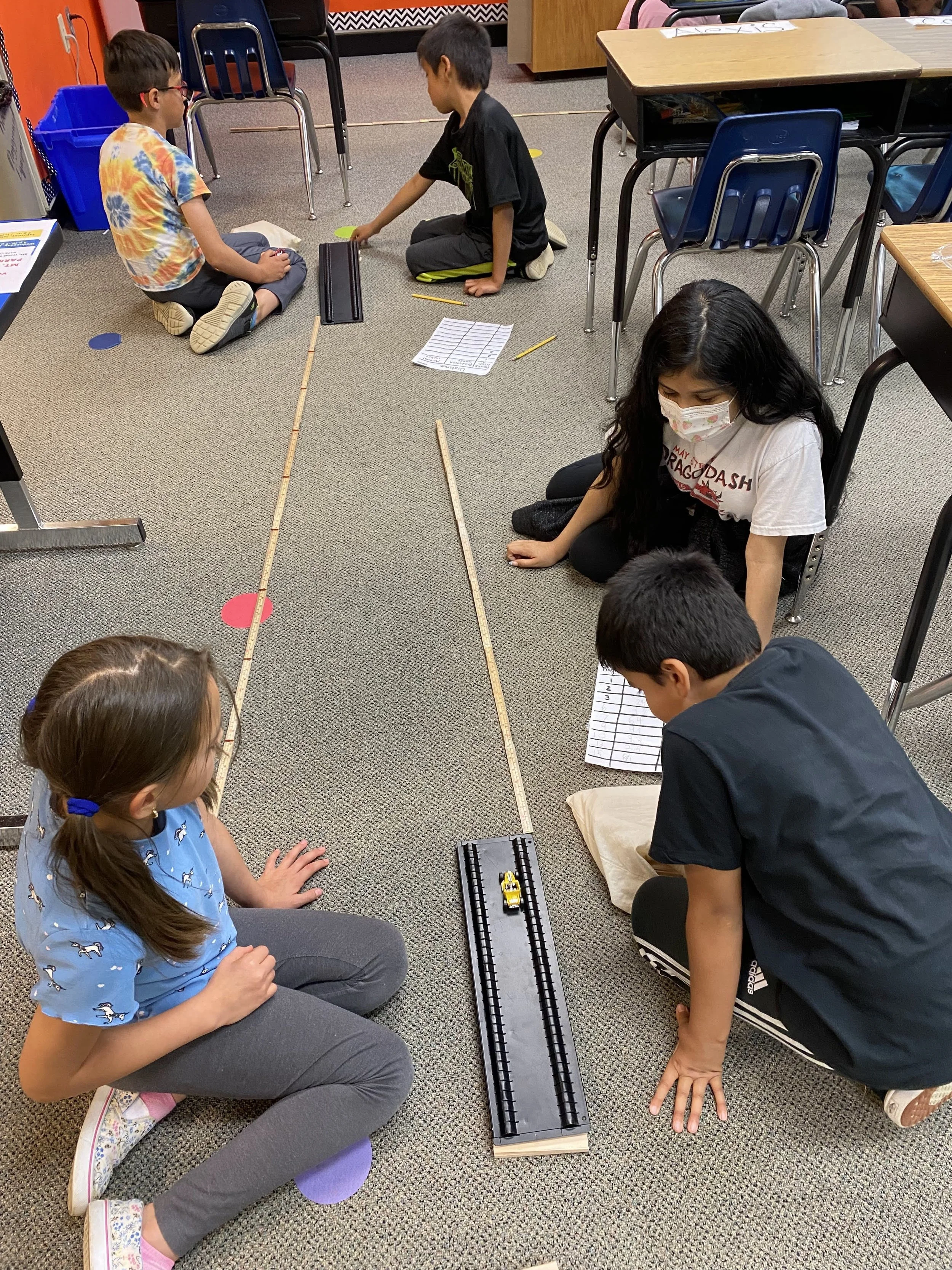 Teen Leader Kimberly Jaimes-Rodriguez assists youth learning about measurement, distance and data tracking in her work with the Hood River STEM Bus.