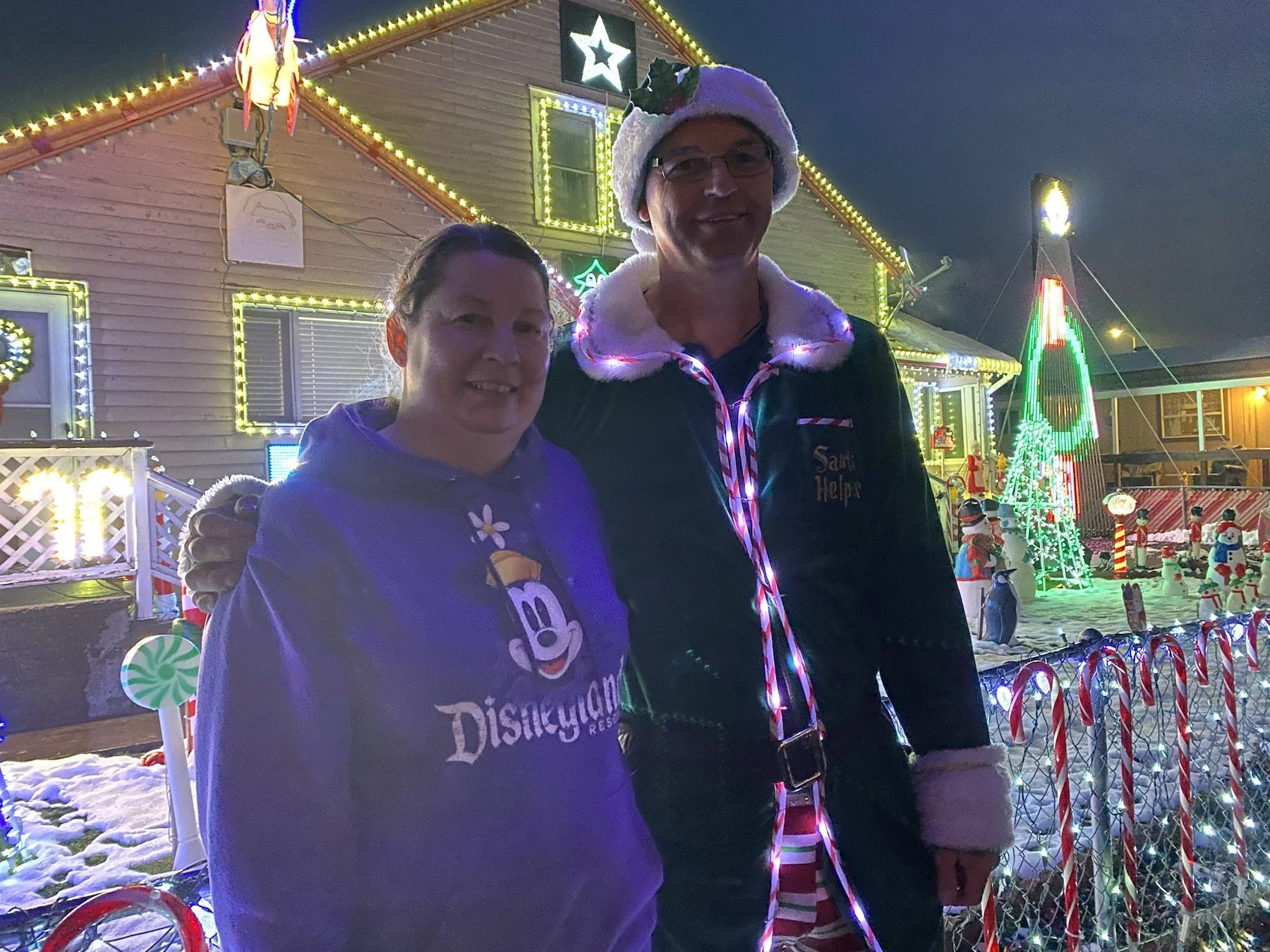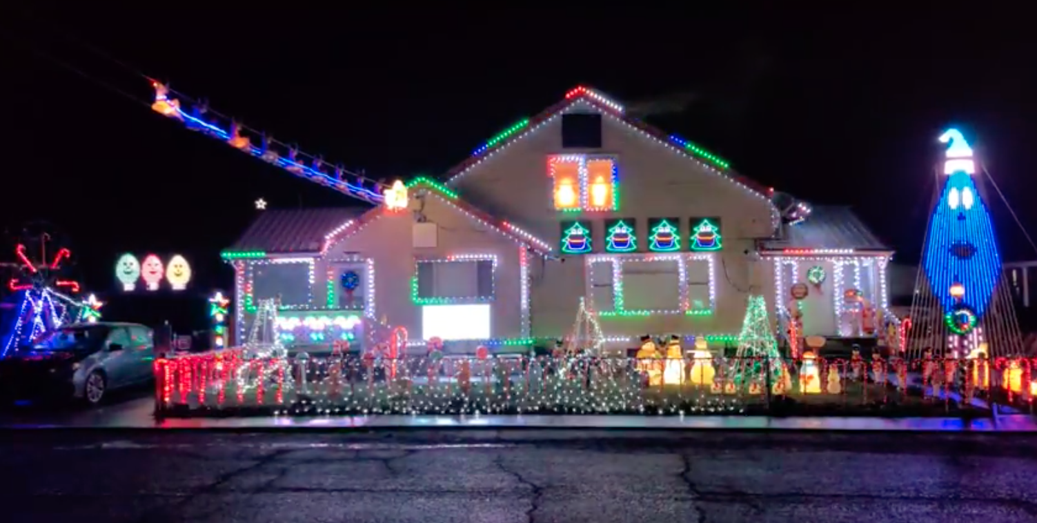 Erica Templeton and Tim Lepinski await the arrival of kids to their home every night, and they expect it will be packed this Christmas Eve. Their home, with a blazing 30,000 lights all moving and choreographed to music, has become a holiday stand-out. The Dalles Beautification Committee just named it the most Grandiose in its Holiday Display contest. Their house is at 3800 W. Sixth Street in The Dalles. Driving west, it’s just past Home Depot on an unnamed court street before you get to Ideal Homes. They light up at 5 p.m.