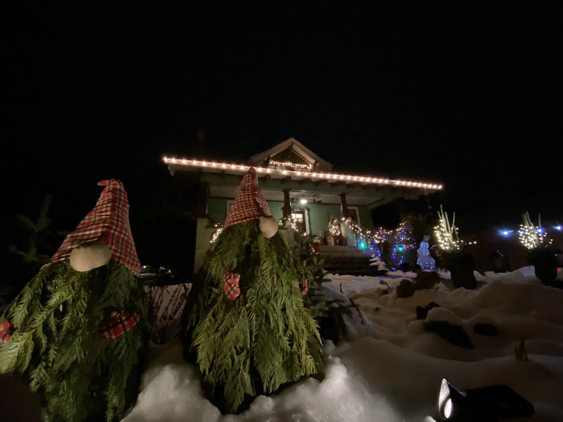 These Elves are on watch for Santa at 922 E. 10th Street.