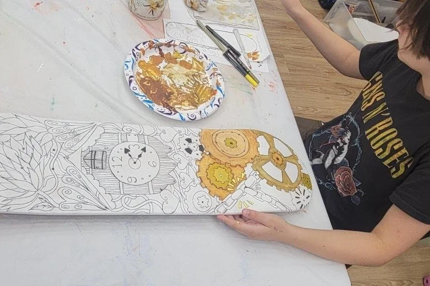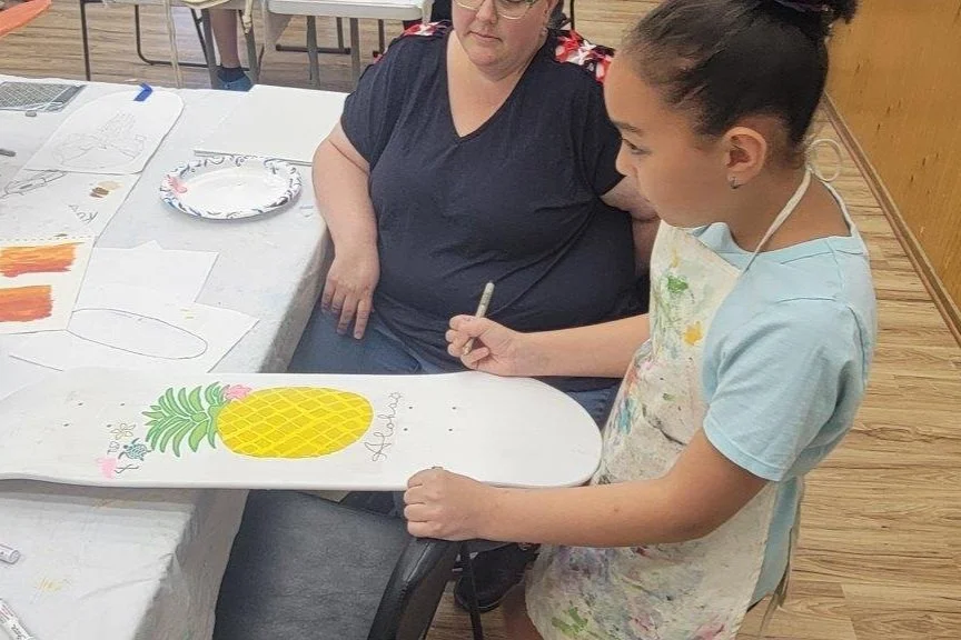 The Dalles, Ore., July 24, 2024 — Michelle Yamamoto, owner of the 301 Gallery in Hood River, led a workshop at The Dalles Library where local teens designed and built their own skateboards.