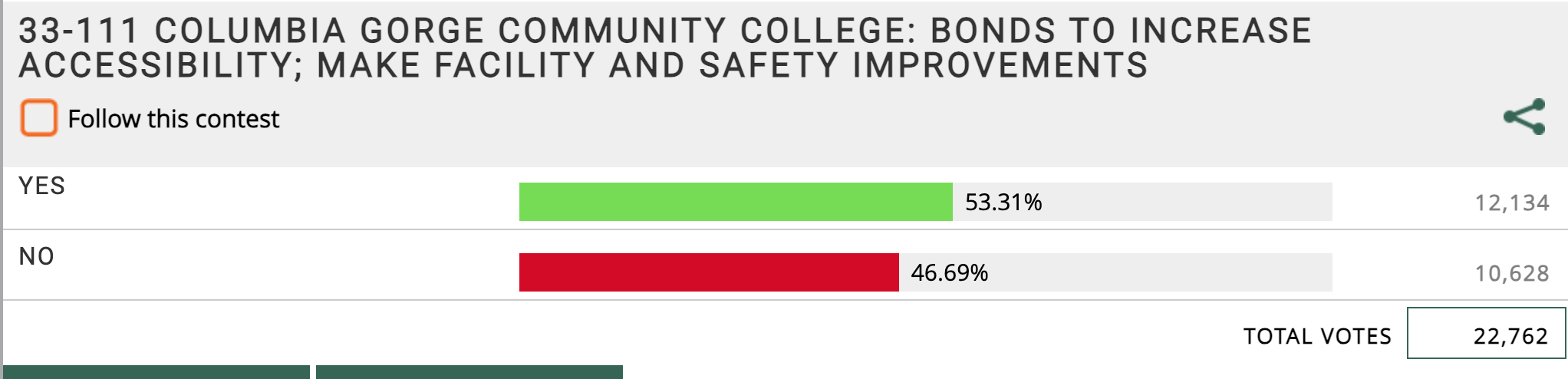 The Majority of Hood River County voters voted Yes on the CGCC Bond.