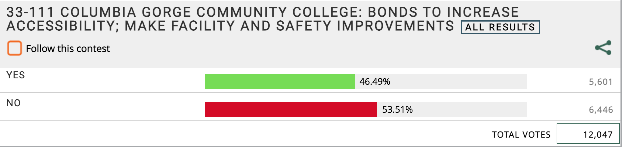 The Majority of Wasco County voters voted no on the CGCC Bond.