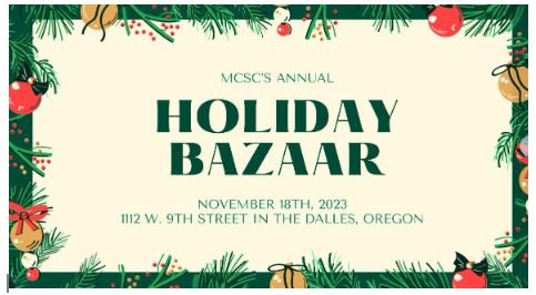 The annual Mid Columbia Senior Center Holiday Bazaar will be on Saturday, Nov. 18, from 9 a.m. until 3 p.m. The center is offering space for vendors, and booths in the basement as well as in the dining room. A space is $35. Contact Dianna Thomas at 541-980-1405 to reserve today.