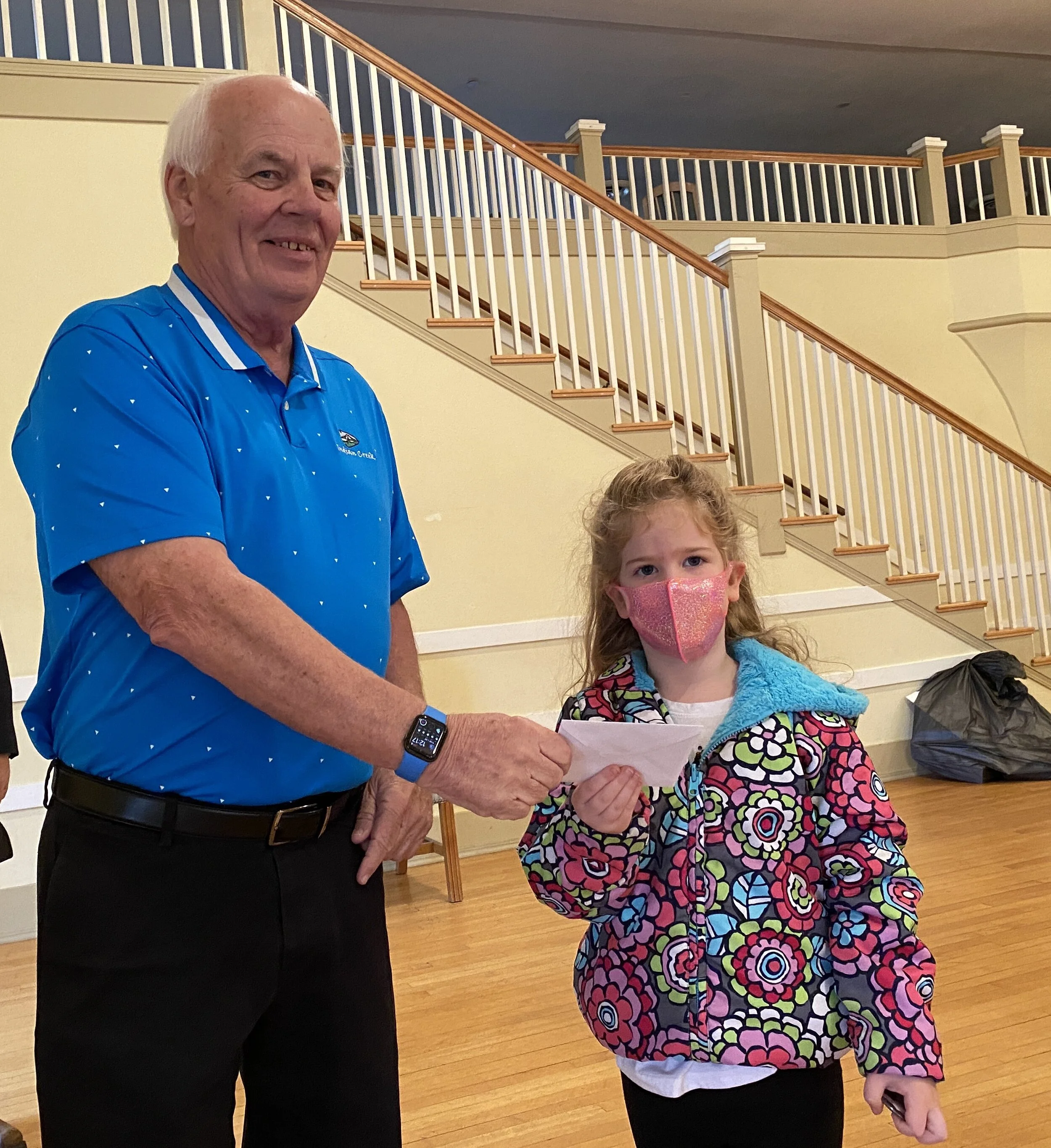 Mid-Columbia Community Action Council Executive Director Jim Slusher gets an envelope filled with a thank you and congratulations from Ana Ramey, 6. She and her mom, Amanda, put the card together with some chocolate. Ramey previously worked with Slusher and Ana would visit and call Jim, boss.