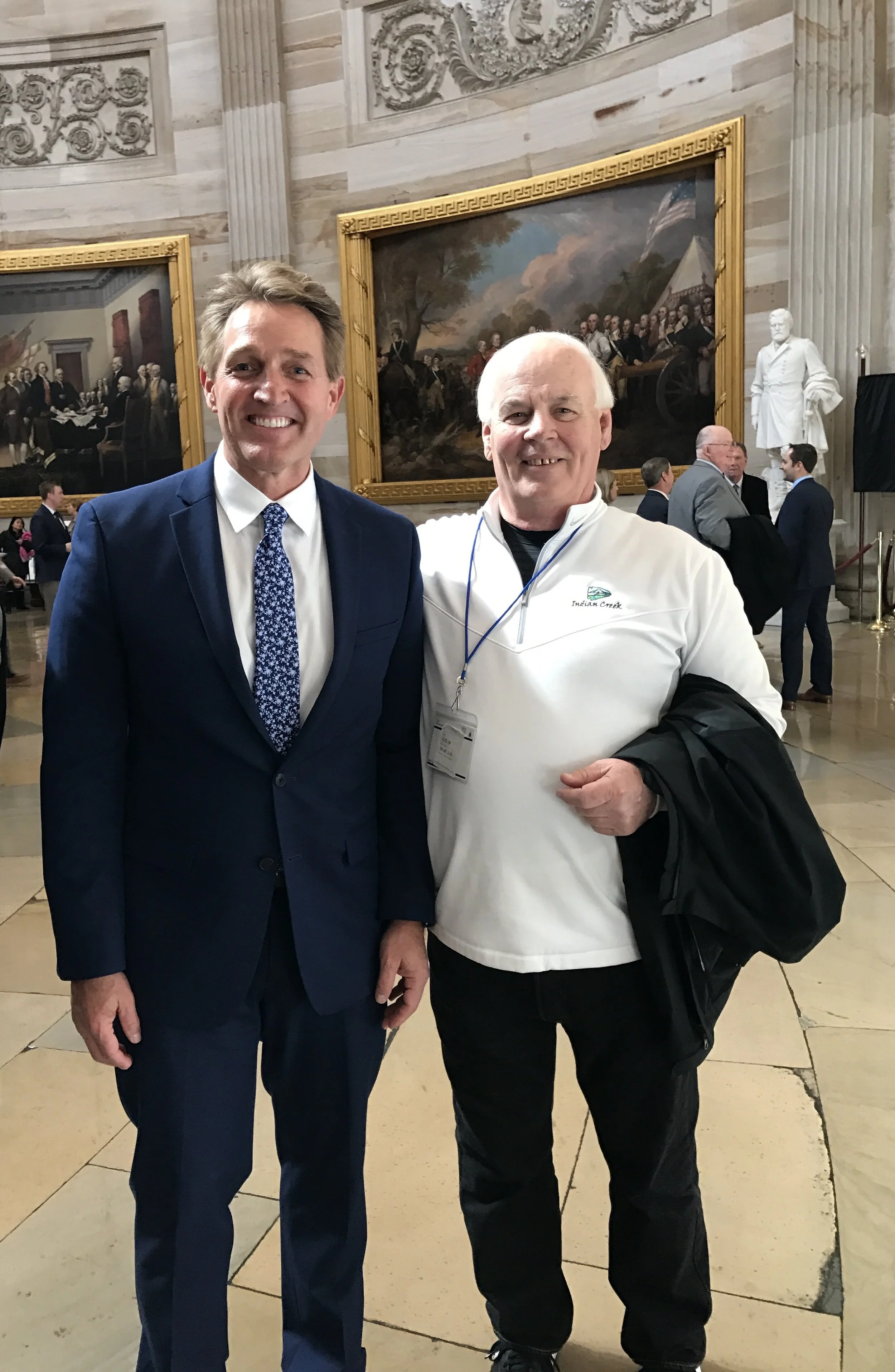 Jim Slusher with Arizona Senator Jeff Flake. Slusher said he and Garcia Francisco ran into the Senator while making his rounds to Oregon Representatives during one of his many trips back to Washington D.C. in efforts to help locals.