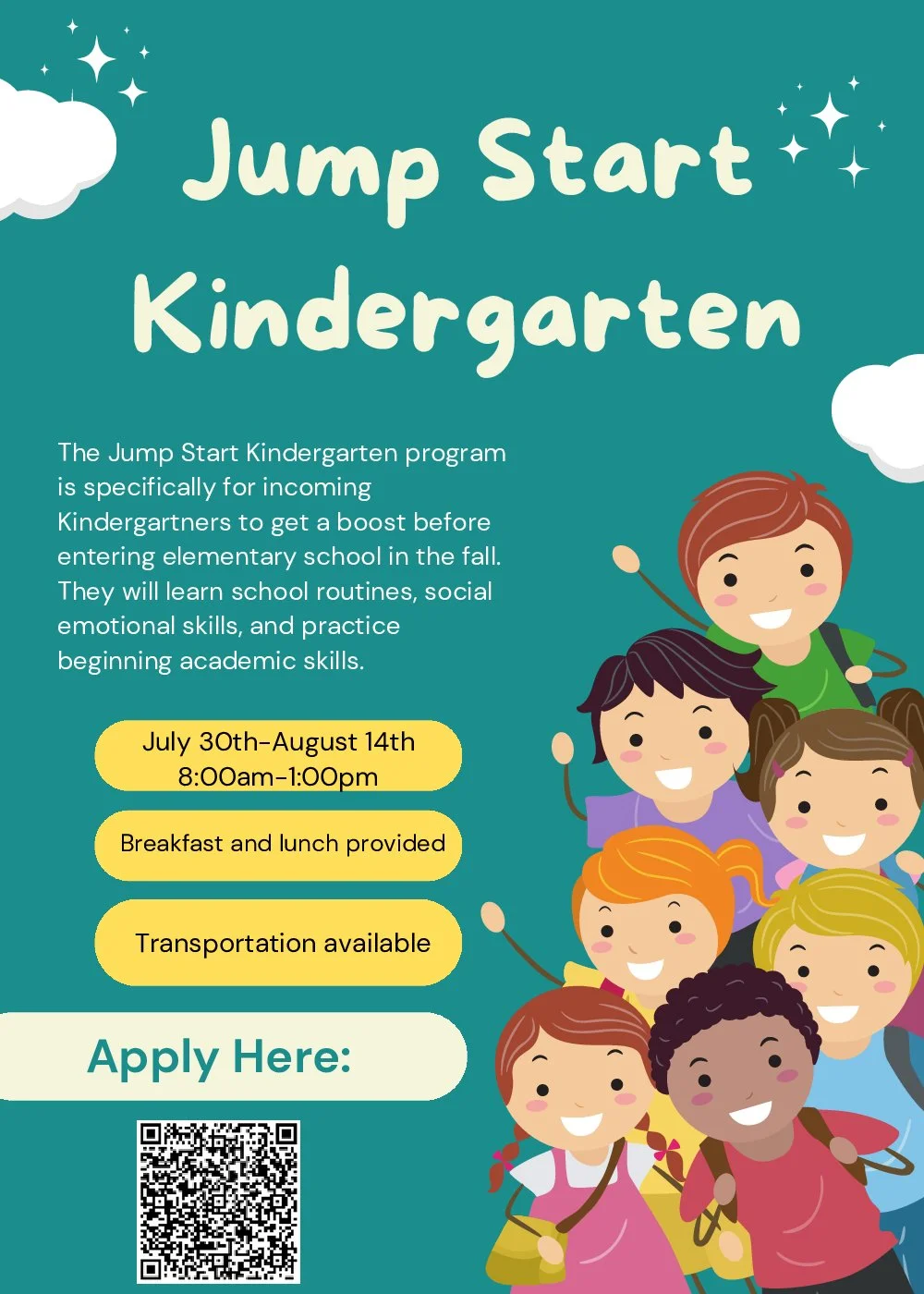 Don't miss this opportunity to give your child a head start on their educational path. Secure their spot today in the Jump Start Kindergarten program and set them up for success in the upcoming school year.