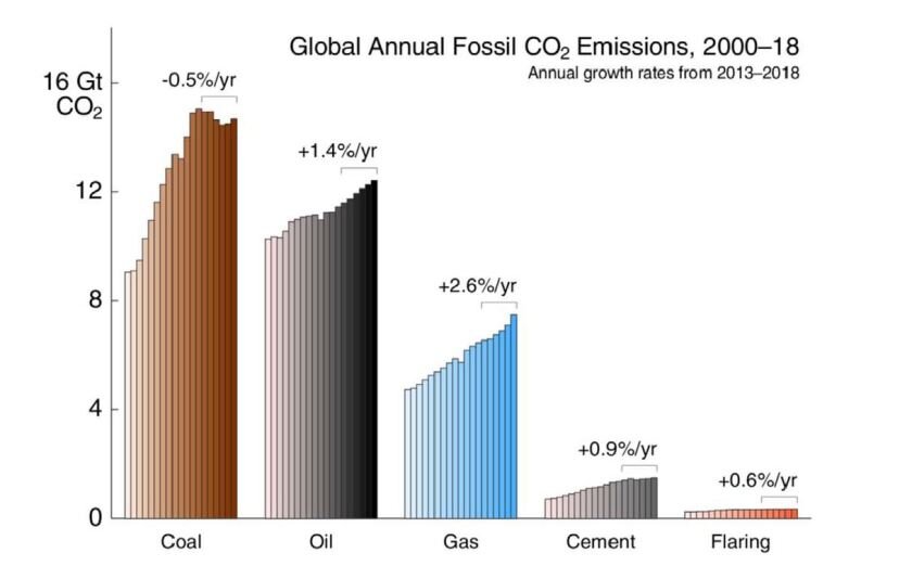 Emissions growth rats shown annually for 2013-2018. in more recent years coal is leading in highest annual CO2 emissions. Photo courtesy of Electricity Fuel Resources.