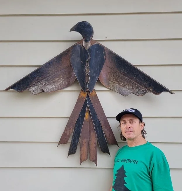 Artist Todd Simmler, 51, of The Dalles with a Thunderbird he made from wheelbarrows. Thirty of his sculptures will be on display at The Hub, 420 First St., The Dalles on Aug. 5, starting at 6 p.m. The Gallery of work is just one of multiple events that will charge up downtown on First Friday.