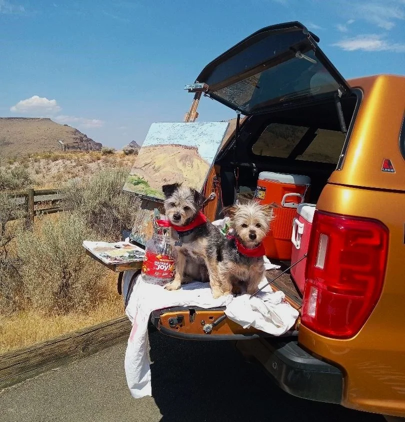 The back of the truck serves as an outdoor studio for Pepin-Wakefield who paints on location.